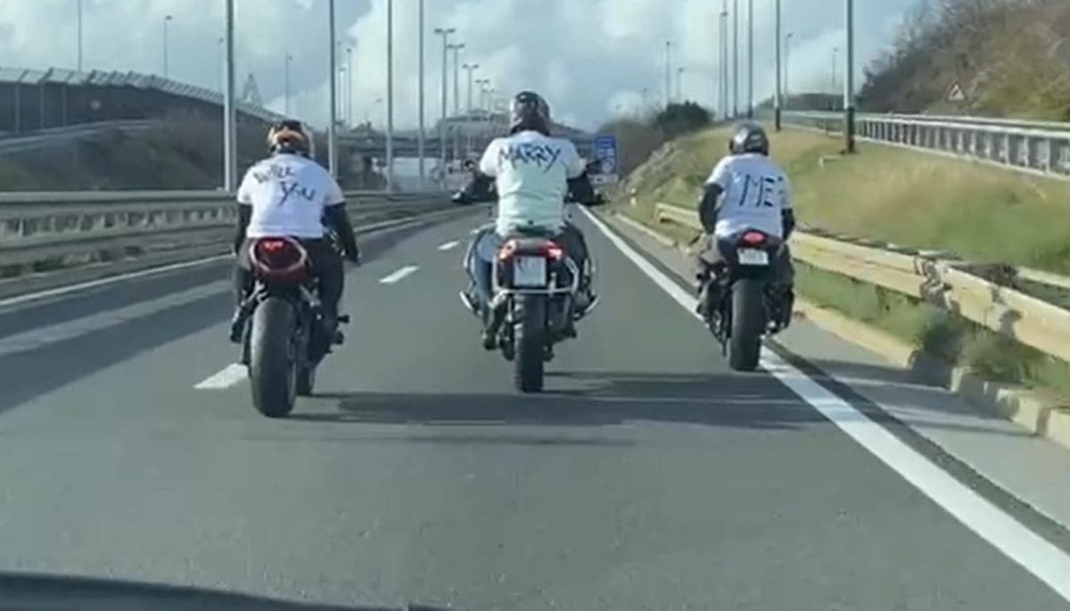 Dečki na motorima pritom su nosili majice s natpisima koji su, čitajući ih zajedno, formirali najvažnije pitanje u njegovu dosadašnjem životu – "Will You – Marry – Me?" odnosno "Hoćeš li s eudati za mene?", piše RI portal.