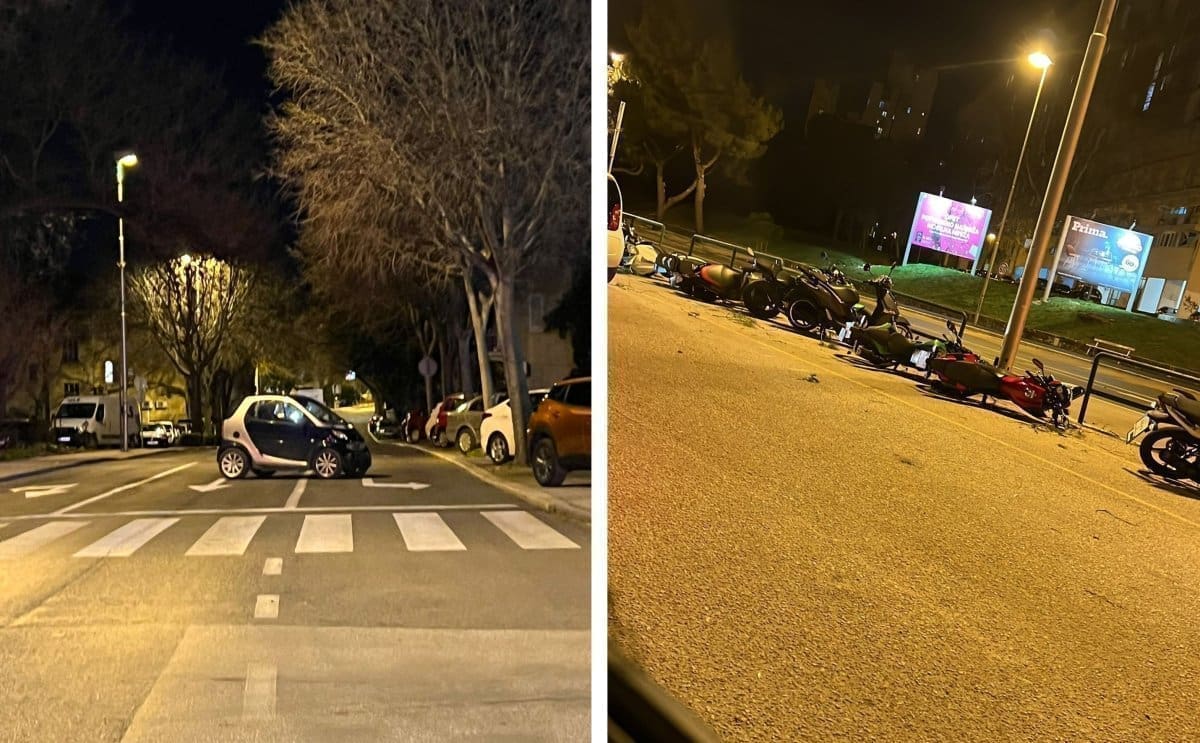 Vjetar je u Splitu doslovno čupao sve pred sobom. Brojni kontejneri su završili na cesti, a one polupodzemne je otvorio vjetar. Osim toga, neka vozila je jaki vjetar 'bacio', pa su ista završila na prometnici. Također, na Poljudu su motocikli autoškola 'popadali' od siline udara vjetra.