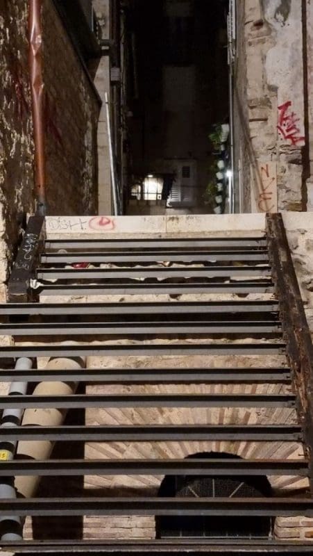 Na skalama u Ulici Andrije Alješija u Dioklecijanovoj palači uklonjena su drvena gazišta, a zaštitna ograda stoji širom otvorena.