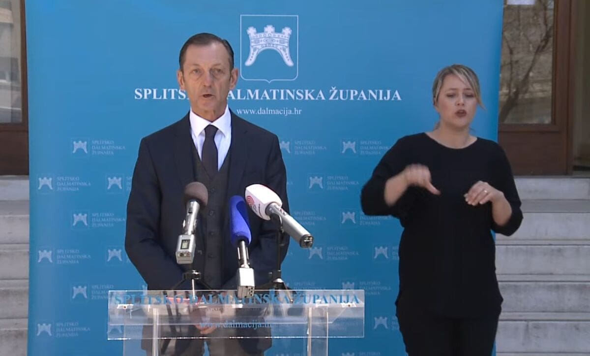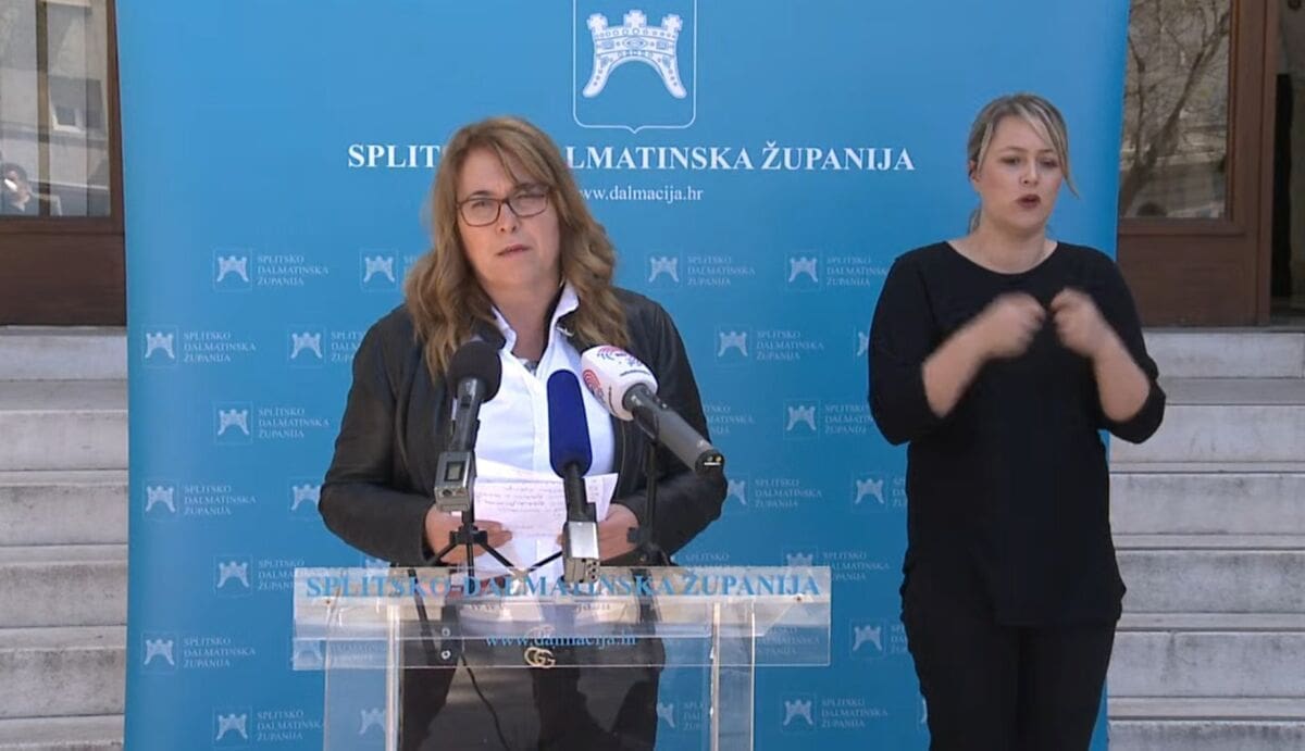 Stožer civilne zaštite Splitsko-dalmatinske županije održava konferenciju za medije ispred zgrade Županije u Splitu.