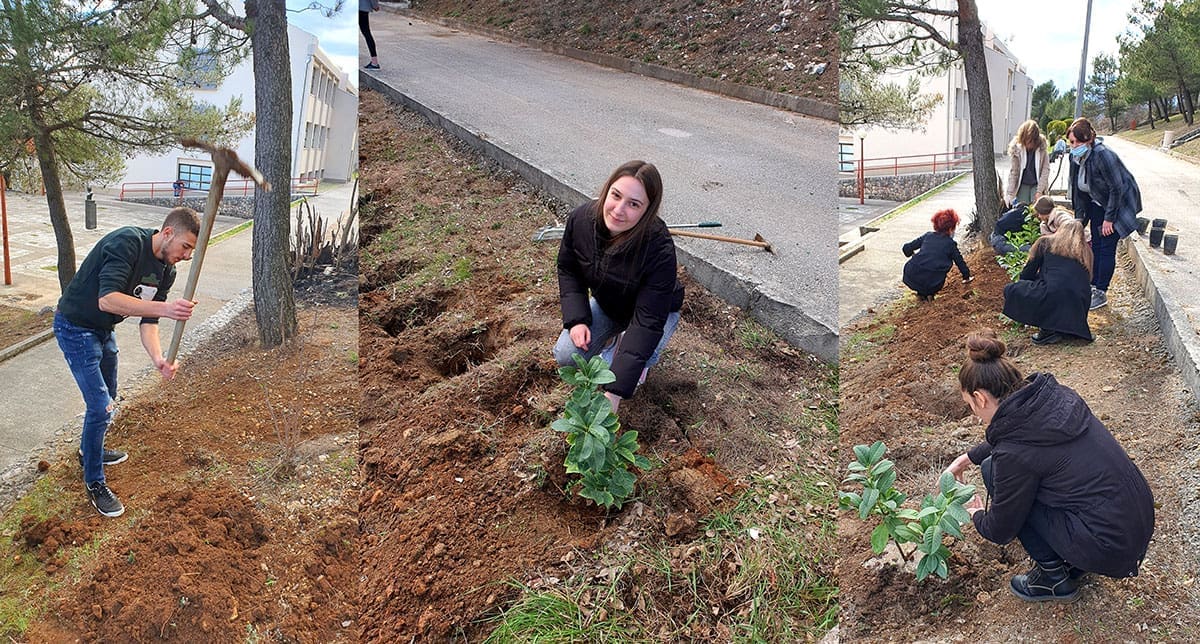 Ovih dana učenici i profesori smjera ekološki tehničar zasadili su nekoliko vrsta stabala i biljaka oko zgrade srednjih škola u Imotskom.