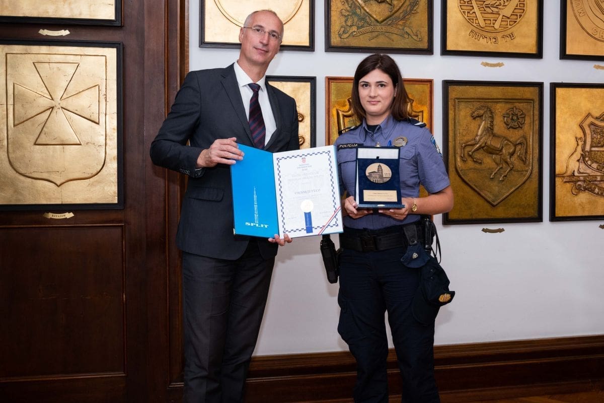 U gradskoj vijećnici Grada Splita gradonačelnik Ivica Puljak dodijelio je javno priznanje Medalje Grada Splita policijskoj službenici Viktoriji Vuco i policijskim službenicima Anti Križanu i Mladenu Deliću.