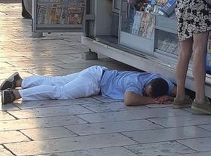 Naime, jedan mladi stranac zaspao je pred kioskom u blizini splitskog hrama kulture. Kupci su morali paziti da ga ugaze.