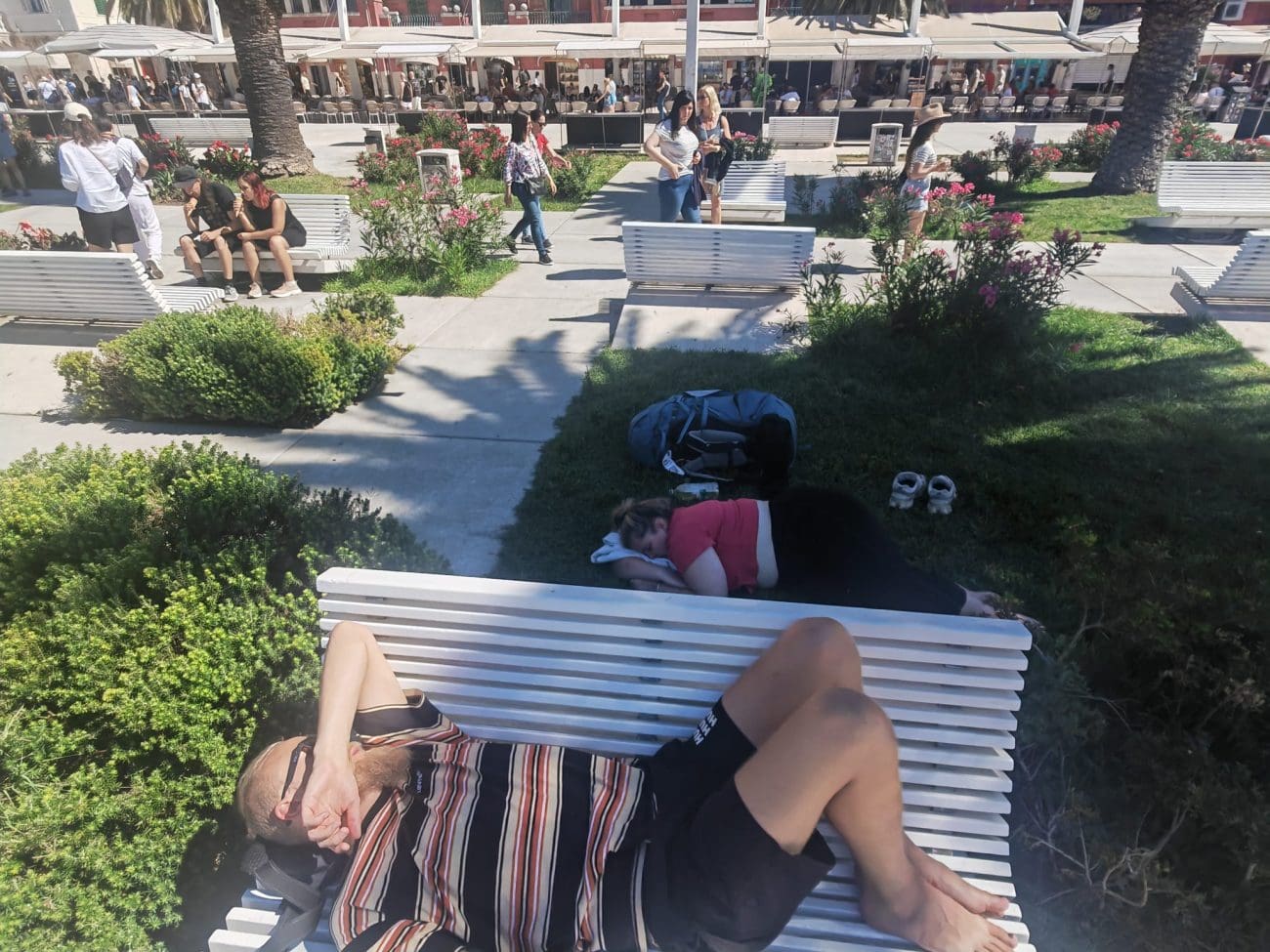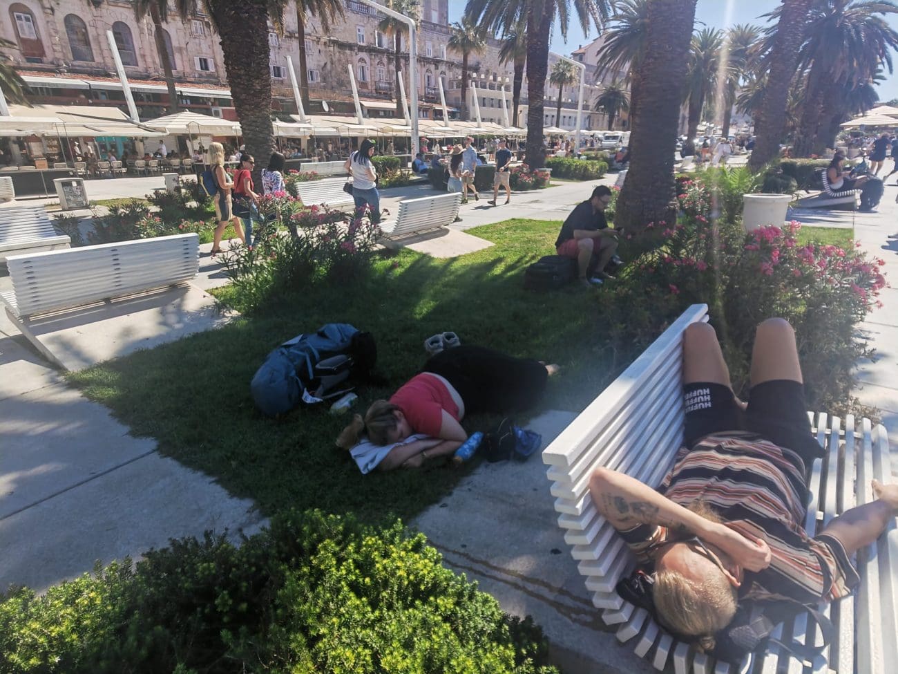Turistička sezona u Splitu je u punom jeku, a Riva je ponovno prepuna – no ne samo šetača i gostiju kafića. Sve češće se mogu vidjeti prizori umornih turista koji, zbog manjka sadržaja, hlada ili smještajnih opcija, spavaju po klupama i travnjacima po centru grada.