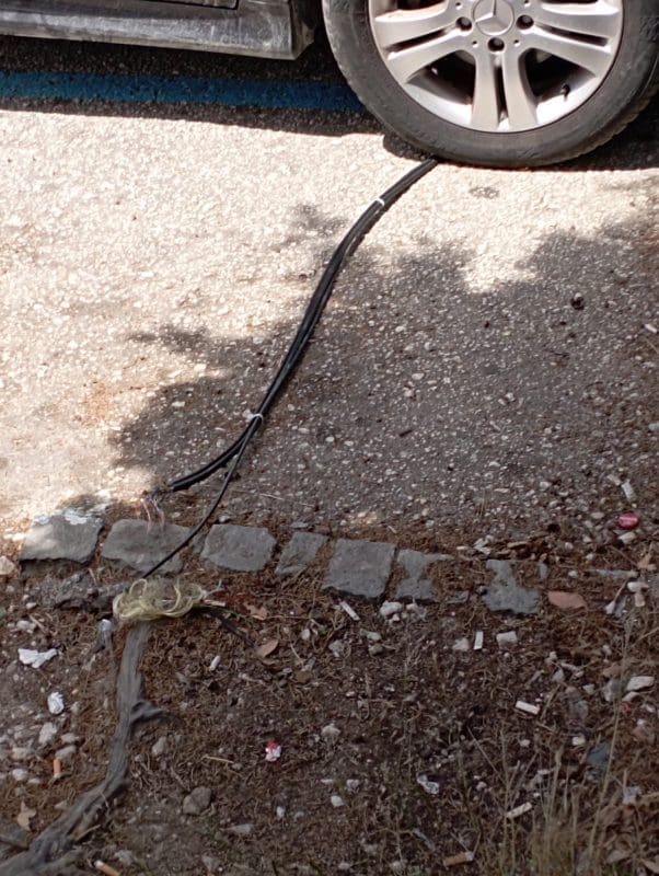 Nikakve obavijesti nema o tome je li kabel pod naponom ili nije. Nadamo se da nije, ali svejedno nije u redu da je tek tako ostavljen. Po svemu sudeći, preko njega prelaze automobili, a svakodnevno je tu i dosta pješaka.