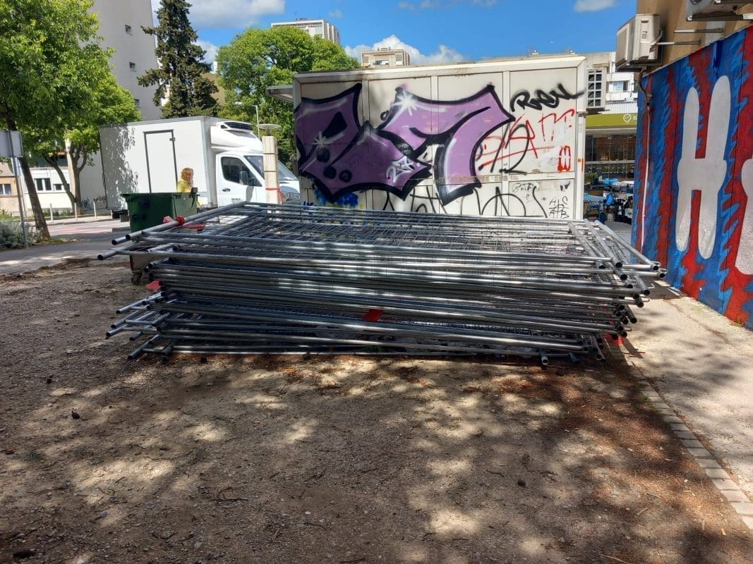 Djelatnici Tržnica Split su nakon završetka betoniranja uklonili ograde i njihove stalke s radilišta na tržnici i odložili ih i iza trafike kod zgrade uz Pazarić, čiju bočnu fasadu odnedavno krasni novi Hajdukov mural.
