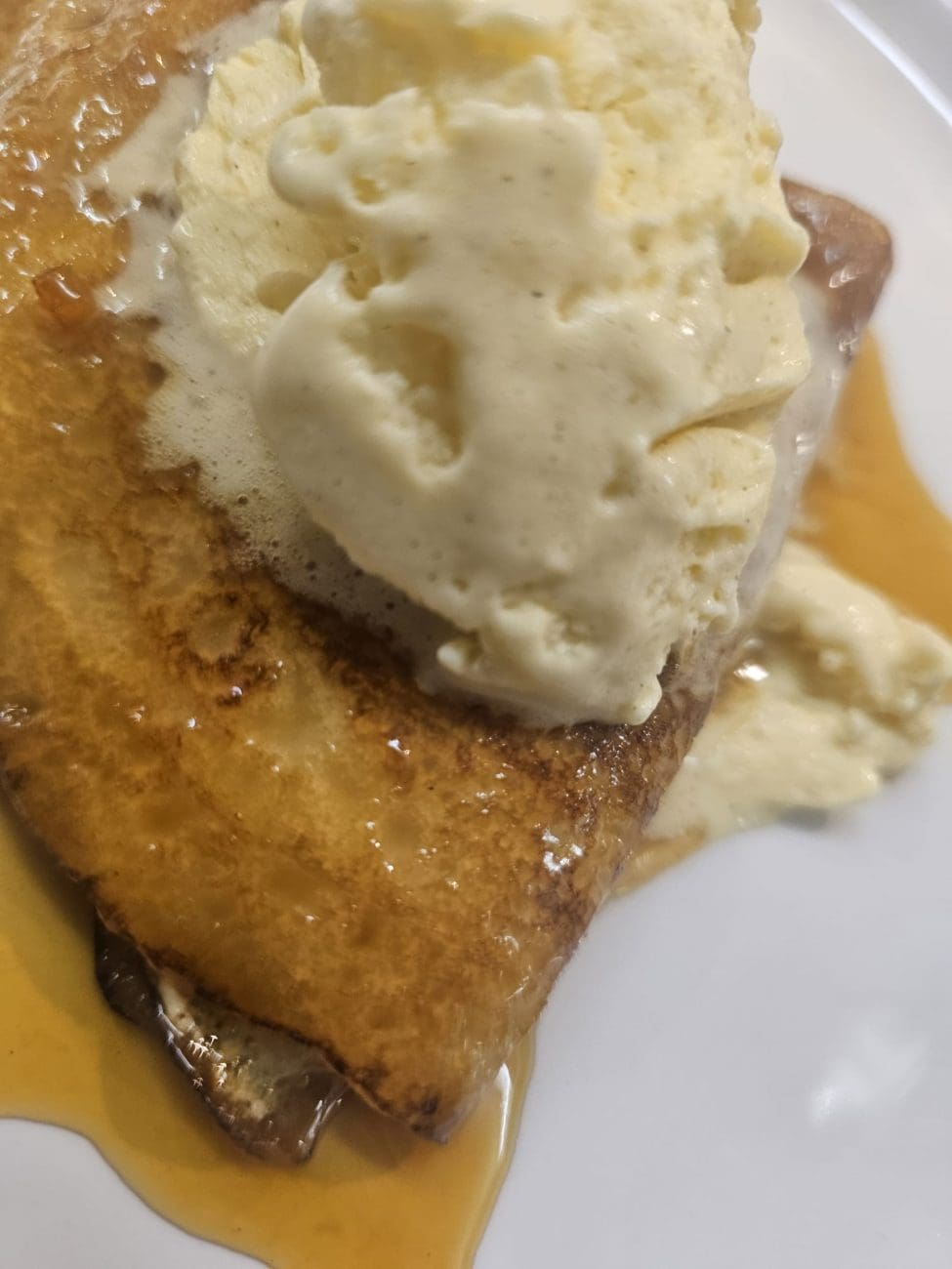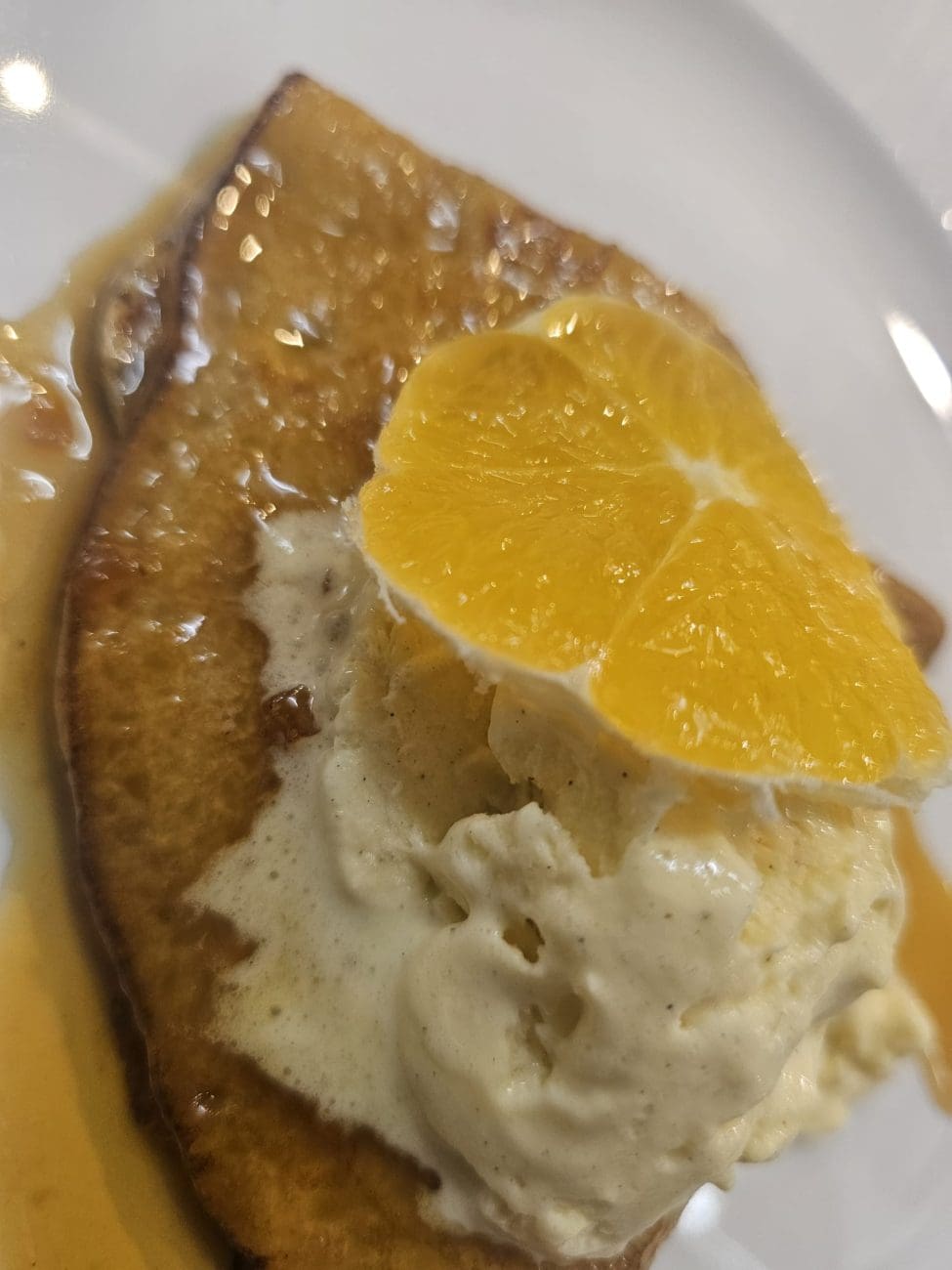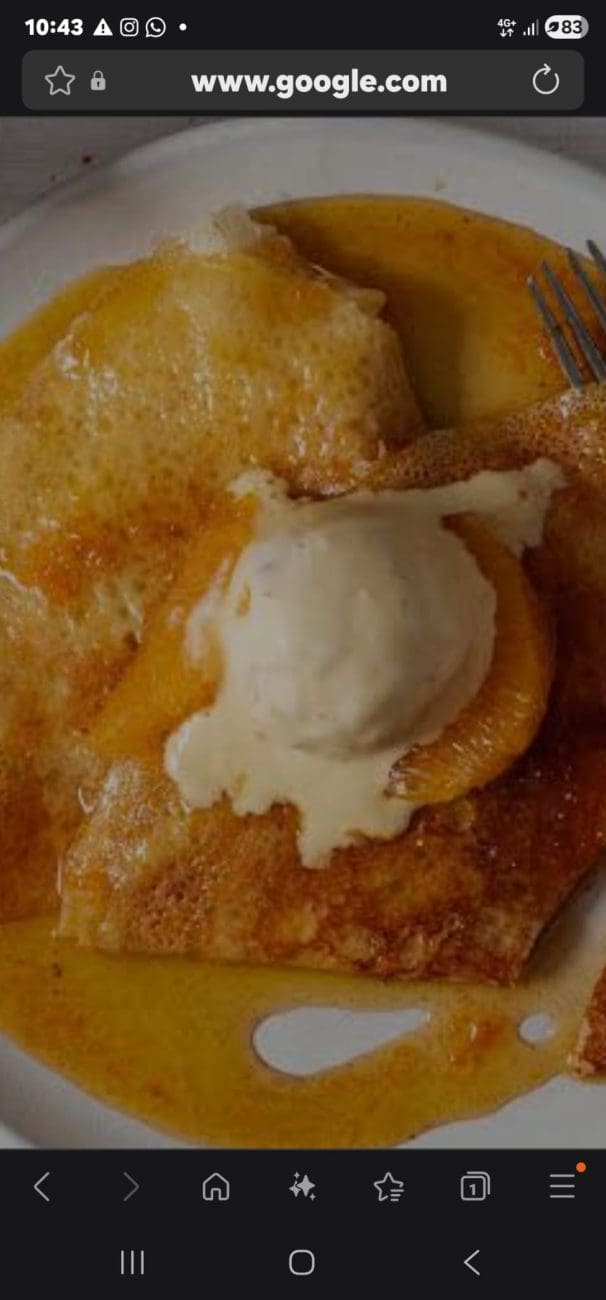 I to u njezinom fantastičnom obliku — Crêpes Suzette. Palačinke natopljene sirupom od naranče i karameliziranog šećera, flambirane prije serviranja. Recept star još iz 19. stoljeća.