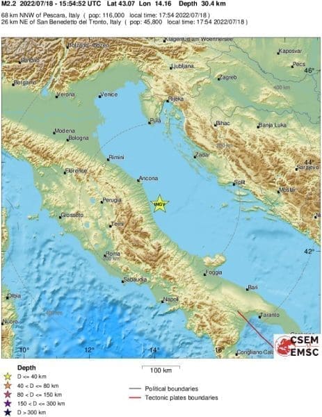 Prema podacima EMSC-a, magnituda mu je bila 2.2 prema Richteru, a epicentar 68 km sjeverozapadno od Pescare. Dubina potresa se procjenjuje na 30 kilometara.