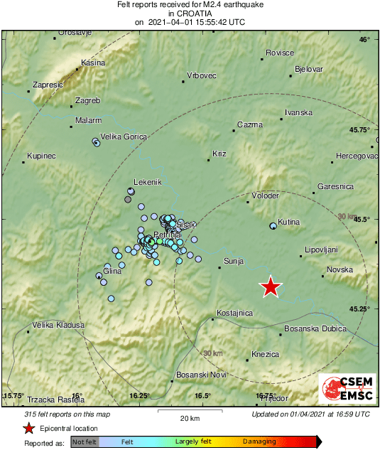 Map of felt reports received so far following the #earthquake M2.4 in Croatia 41 min ago pic.twitter.com/itTx9oB8sy