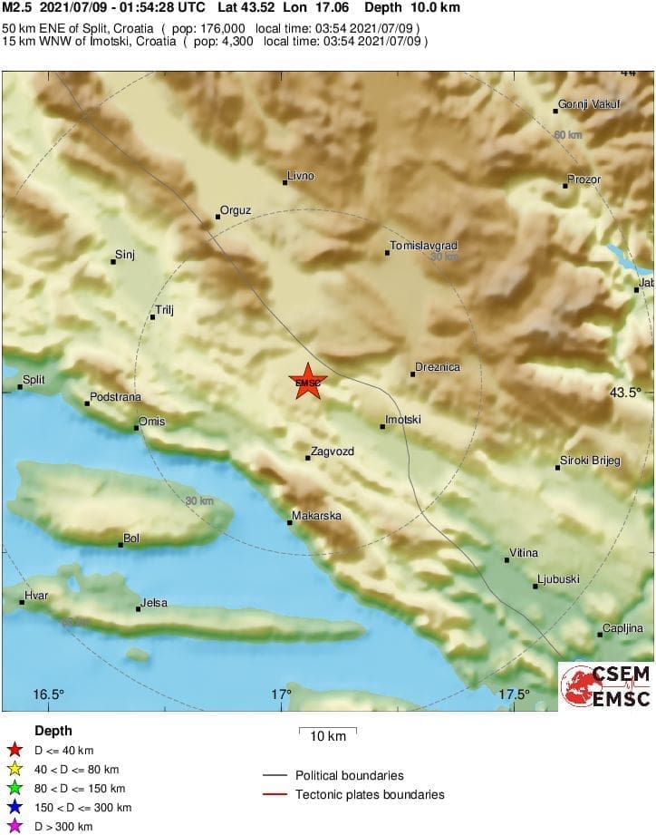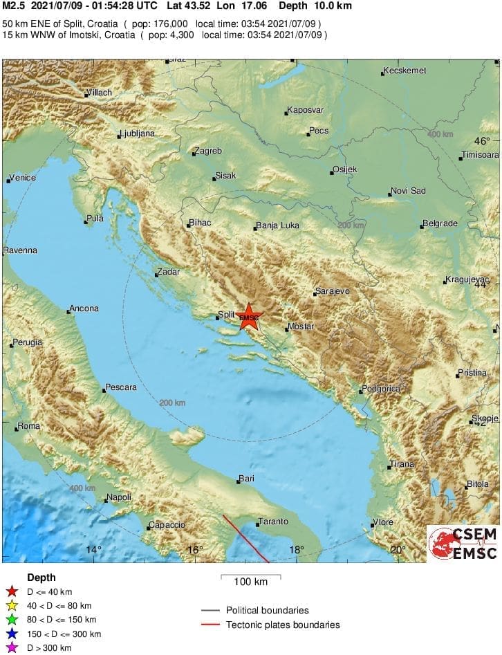 Rano jutros nešto prije 4 sata dogodio se slab potres u Dalmatinskoj zagori.