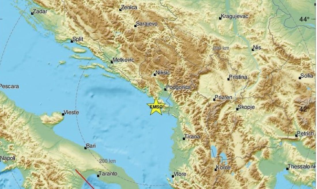 Sinoć u 20 sati i 23 minuta slabiji potres dogodio se u južnom Jadranu crnogorskog primorja.
