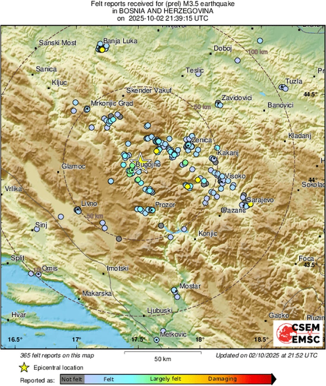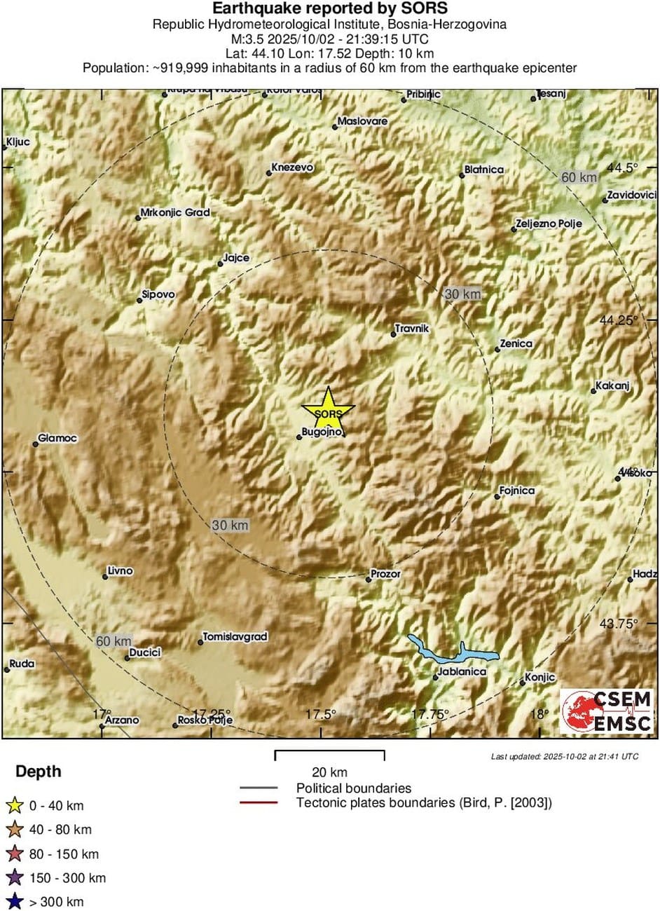 Prema prvim podacima EMSC-a, potres je bio magnitude 3.5 prema Richteru, a epicentar mu je bio 7 kilometara sjeveroistočno od Bugojna.