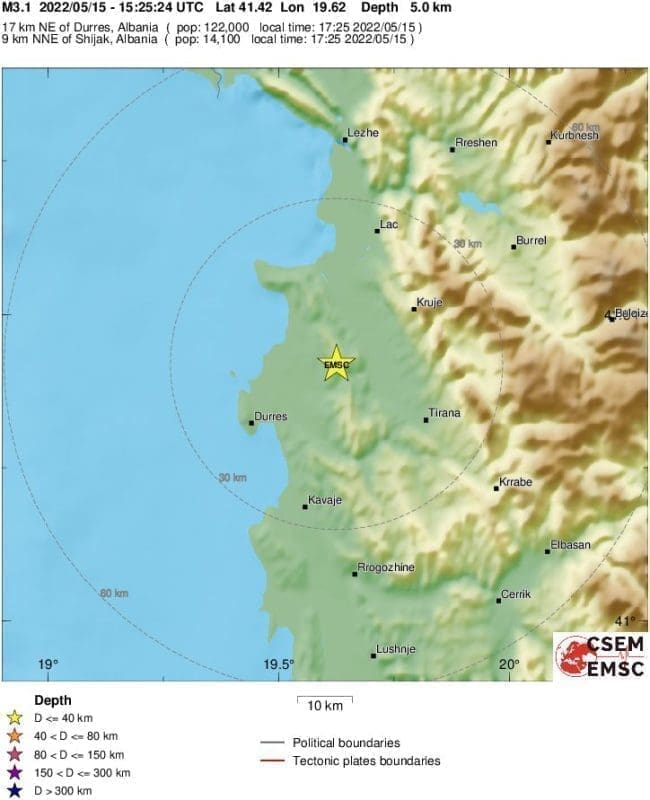 Prema podacima EMSC-a, magnituda potresa je bila 3.1 prema Richteru, a epicentar 17 kilometara od Drača.