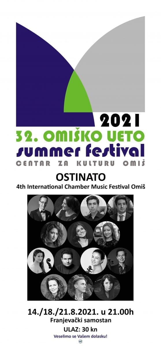 U sklopu 32.Omišog kulturnog ljeta, u subotu 21. kolovoza u 21 sat, zatvara se 4.Međunarodni festival komorne glazbe OSTINATO. Na završnoj večeri nastupit će najbolji mladi glazbenici na svijetu.