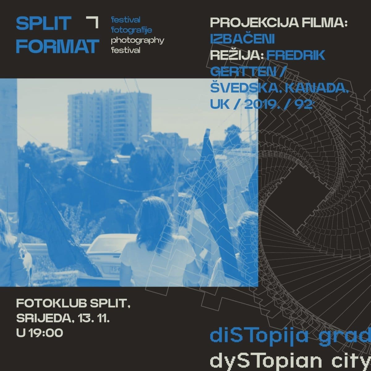 Podsjetimo, ovogodišnje izdanja festivala fotografije Split Formata iz različitih se perspektiva bavilo temom grada/urbanih prostora i gradskog identiteta. U mjesec dana programa, koji je započeo otvorenjem izložbe finalista međunarodnog fotografskog natječaja FRAMING THE CITY, u Fotoklubu su gostovala brojna zanimljiva lica i razgovaralo se o važnim i zanimljivim temama – prostornom uređenju, održivom razvoju, budućnosti gradova, održane su zanimljive fotografske radionice, u sklopu foto safari ture posjećen je Split 3, gostovali su fotografi iz regije i inozemstva… a večerašnja besplatna filmska projekcija sigurno će kvalitetno rezimirati sve probleme i izazove o kojima se prethodnih mjeseca dana razgovaralo.