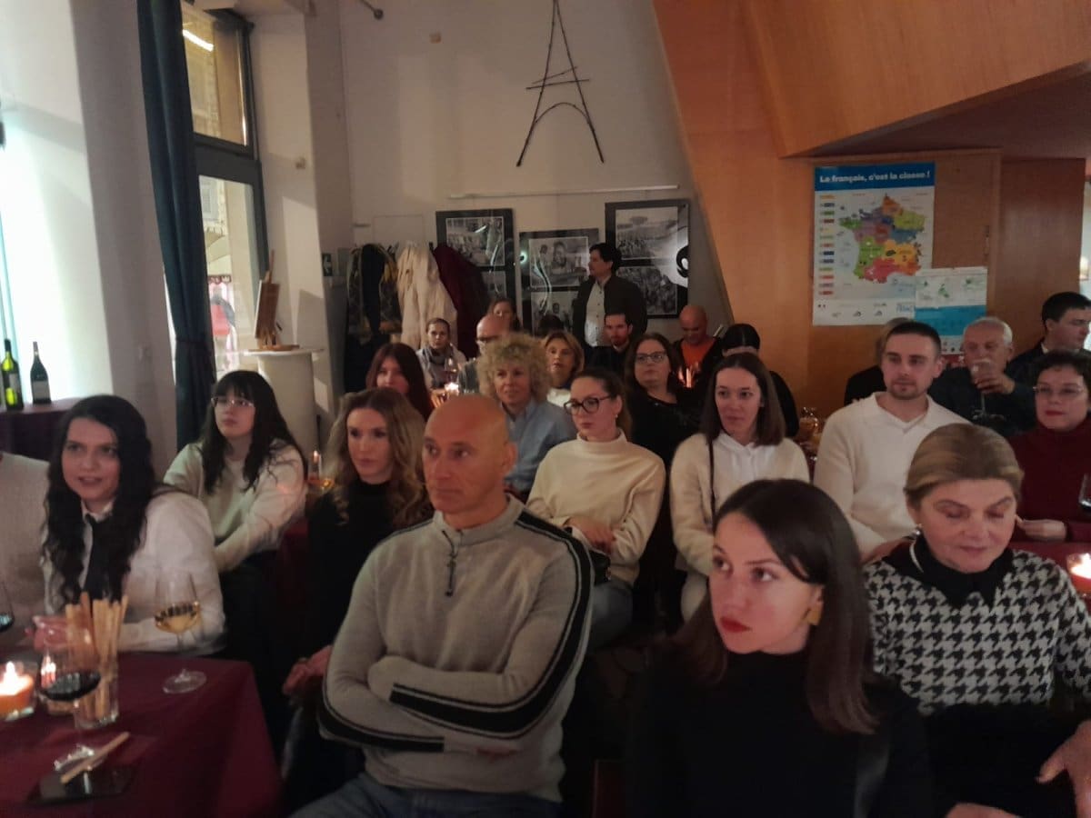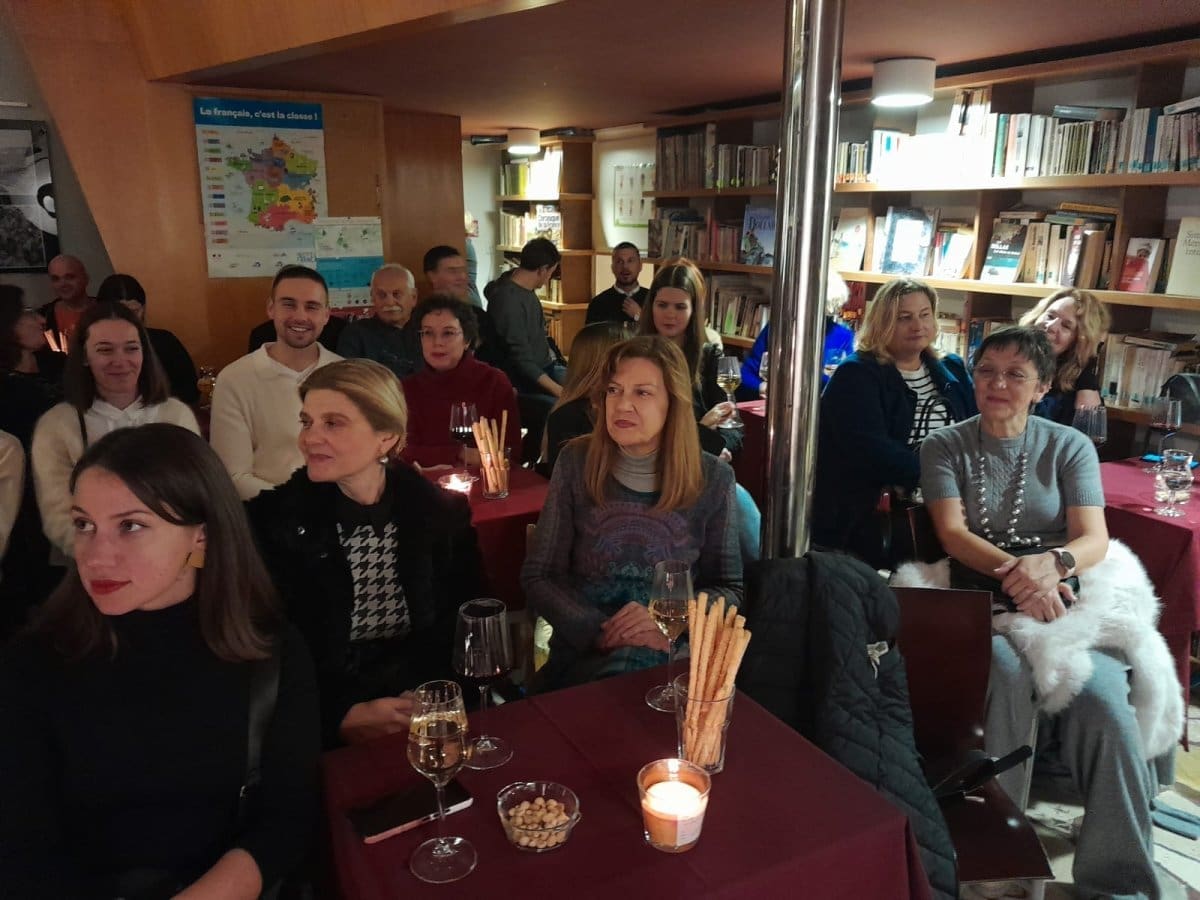 Pjevačica je uz pratnju gitare otpjevala neke od najpoznatijih francuskih šansona dok su gosti degustirali francuska vina.