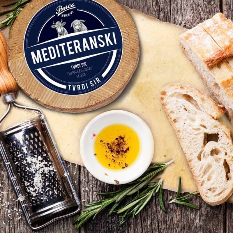 · MEDITERANSKI SIR - tvrdi sir od kravljeg i ovčjeg mlijeka. Njegova izražena aroma i okus privući će istinske ljubitelje i poznavatelje sireva. Idealan je izbor za predjelo uz dobar pršut i masline.