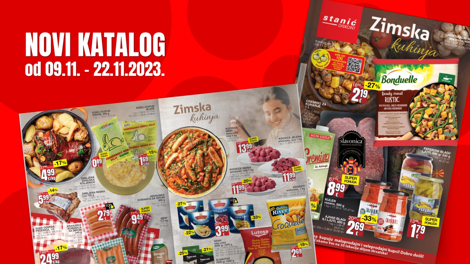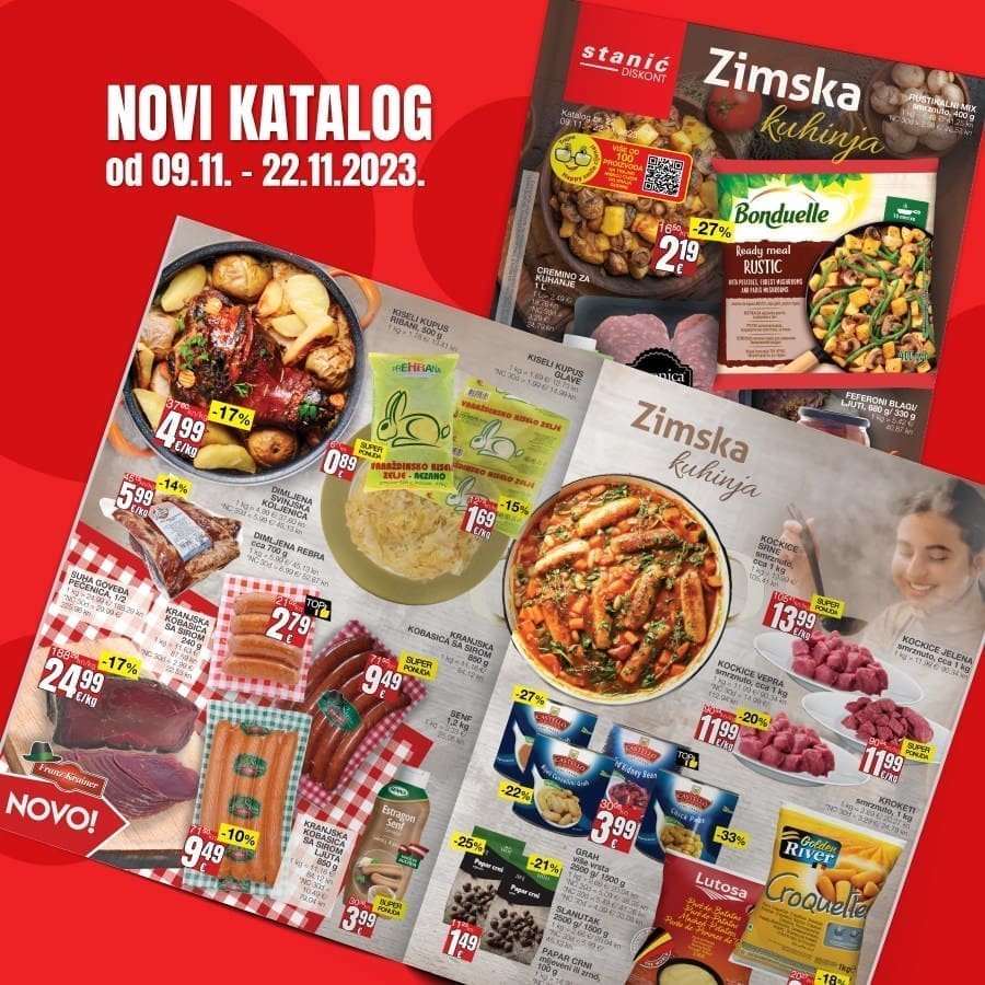 Sa zadovoljstvom predstavljamo najnoviji katalog Diskonta Stanić za period do 22. studenog u kojem ćete pronaći nevjerojatne ponude i super sniženja na preko 100 različitih prehrambenih proizvoda. Dolazak hladnijih dana nosi sa sobom želju za ukusnim varivima i tradicionalnom zimskom kuhinjom, poput graha, kiselog kupusa, kobasica i još mnogo toga.