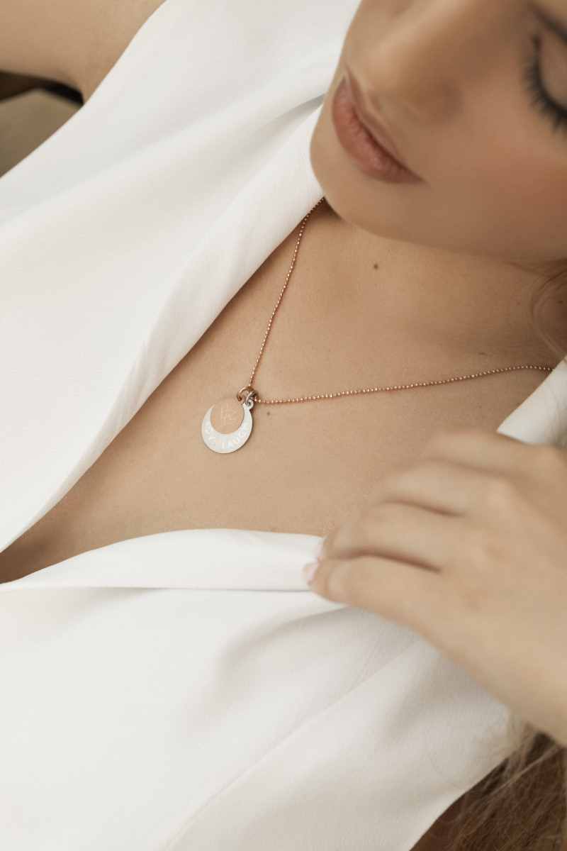 Veće medaljone krase inspirativne poruke poput La vie est belle, Live love laugh, L'amour te Iva Viljevac Fashion Jewelry medaljon, dok male medaljone ukrašavaju simboli mjeseca,
