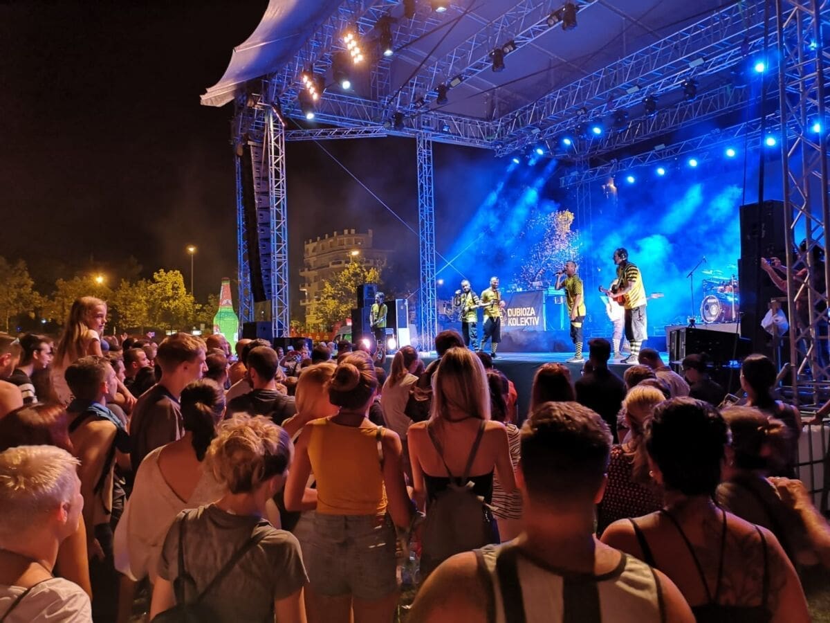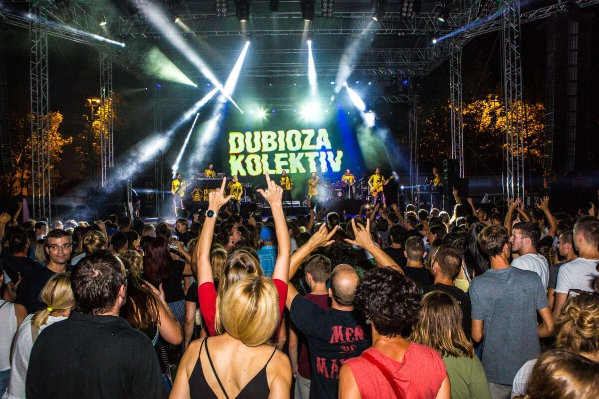 "Molim vas da se ponašate u skladu s europskim koncertnim standardima prema kojima je dozvoljeno da plešete, pjevate, mašete glavom u svim pravcima i uzvikujete standardne rock uzvike tipa "hej, hej", "oooooo...", pušenje marihuane na večerašnjem koncertu, naravno, strogo je preporučeno. Ovaj koncert nije namijenjen za nacionaliste, fašiste, rasiste i šupke generalno" - bio je uvod izlaska na pozornicu Dubioze koji su sa svirkom počeli oko 22:30. Odmah je prva pjesma zapalila publiku, "Kažu" je rasplesala cijeli Stari plac.