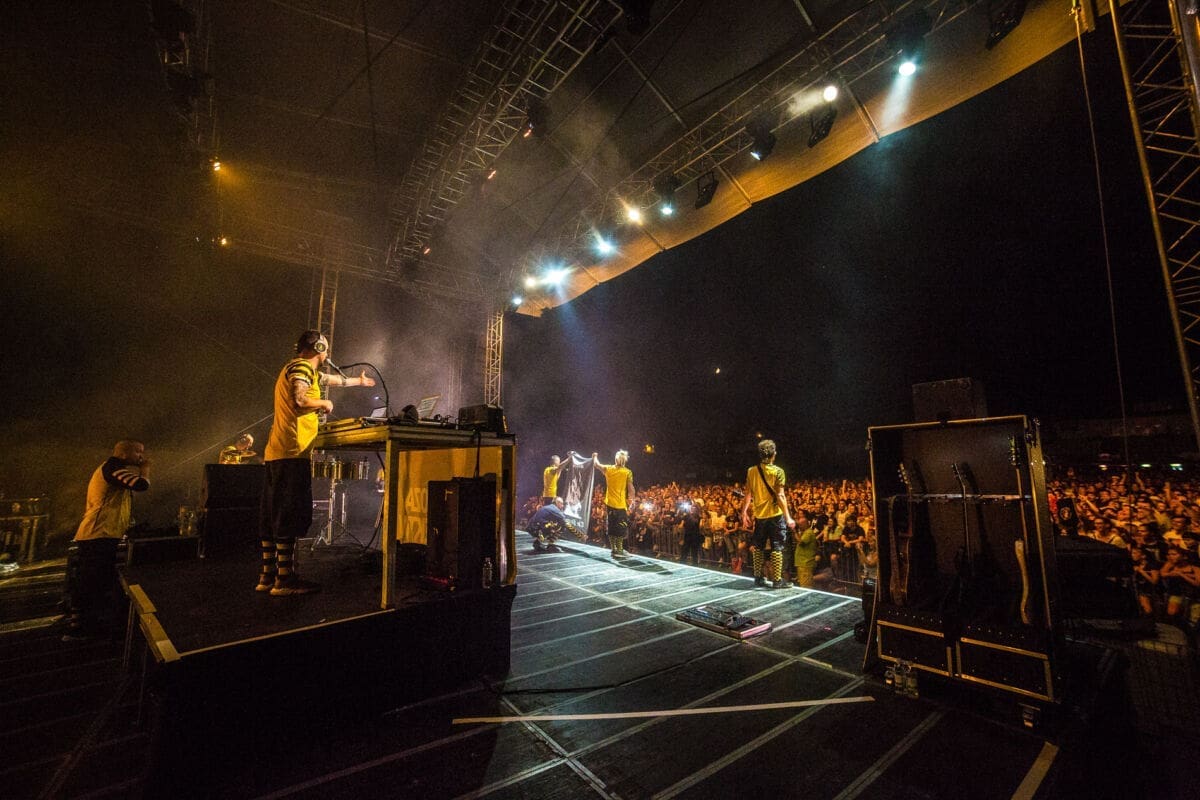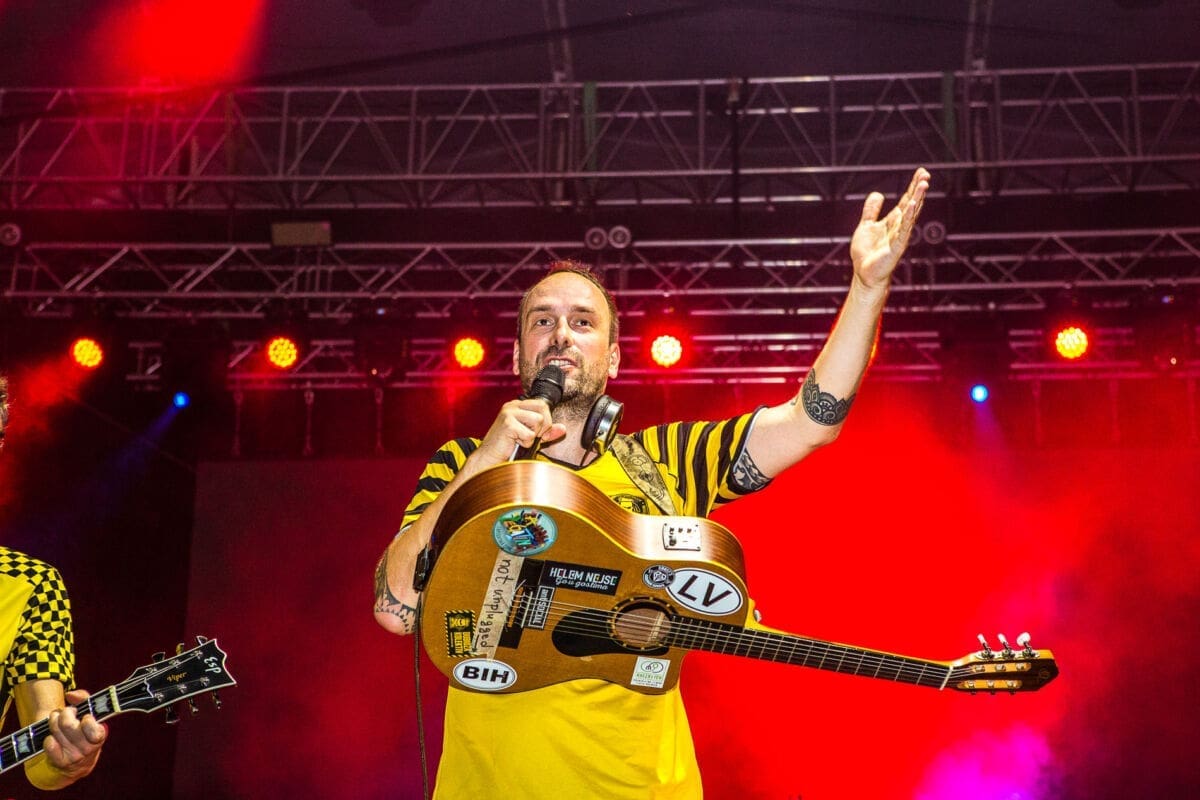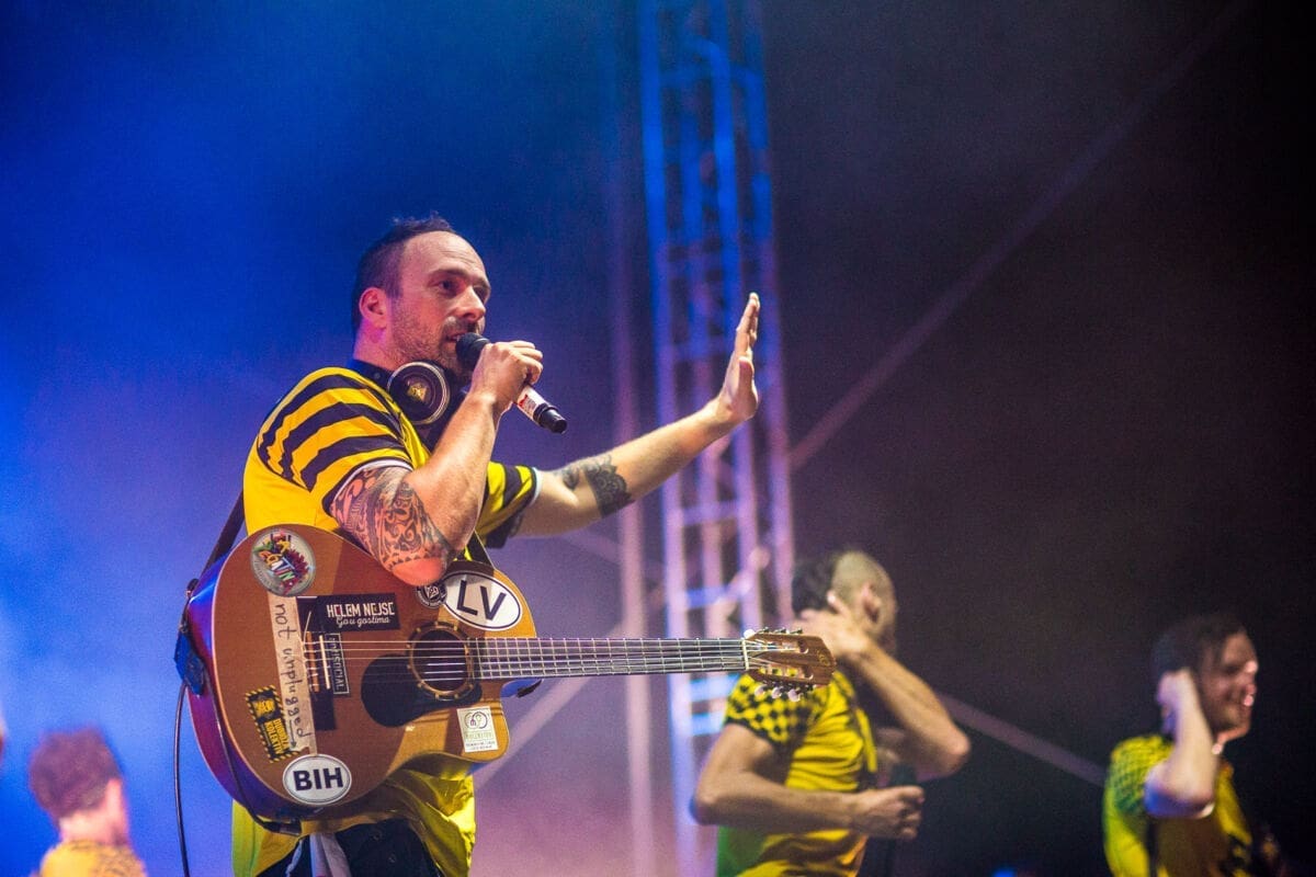 Na "Pionirsku feat" bend je pozvao publiku da upale svjetla na mobitelima pa je krenuo refren "Pošaljimo mlade u dijasporu da rade, da kopaju kanale i farbaju fasade. Pošaljimo mlade u dijasporu da rade, da ribaju tanjire do kraja balade".