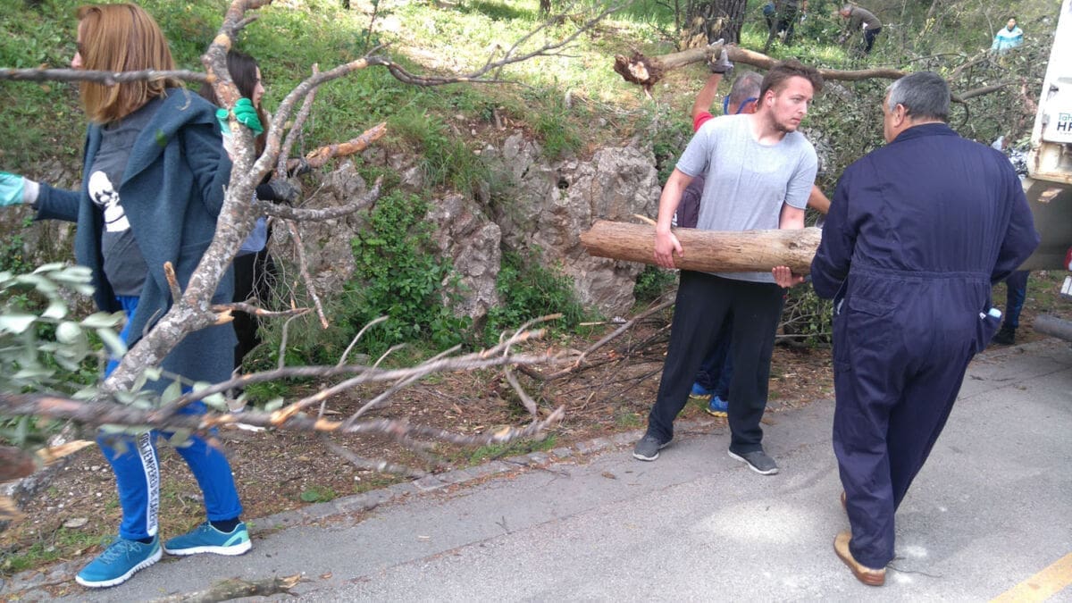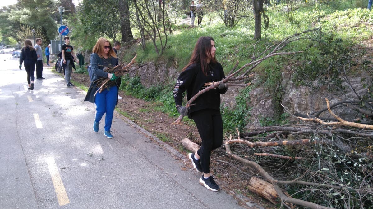 Jutros oko 9 sati kod Spinutskih vrata okupilo se stotinjak volontera svih dobnih skupina koje su dočekali Predsjednik Povjerenstva za Marjan prof. dr. Mirko Rušćić i koordinator Operativne radne skupine Nenad Ružić te članovi povjerenstva dr. Joško Kalilić i Srđan Marinić koji su zajedno s volonterima aktivno radno sudjelovali u akciji prebacivanja granja i deblovine s padina Marjana do ruba Tartaljinovog šetališta s kojeg je više desetaka vozila tipa „grajfer“ odvozilo nakupljene hrpe granja. Čišćenje se nastavilo u dužini od oko 500 m od Spinutskih vrata u smjeru Bena. Nakon uspješnog rada svih volontera okupljenih kod prve vode stigli su u 12 sati čevapčići u sendviču koje su ogladnjeli volonteri rado konzumirali.