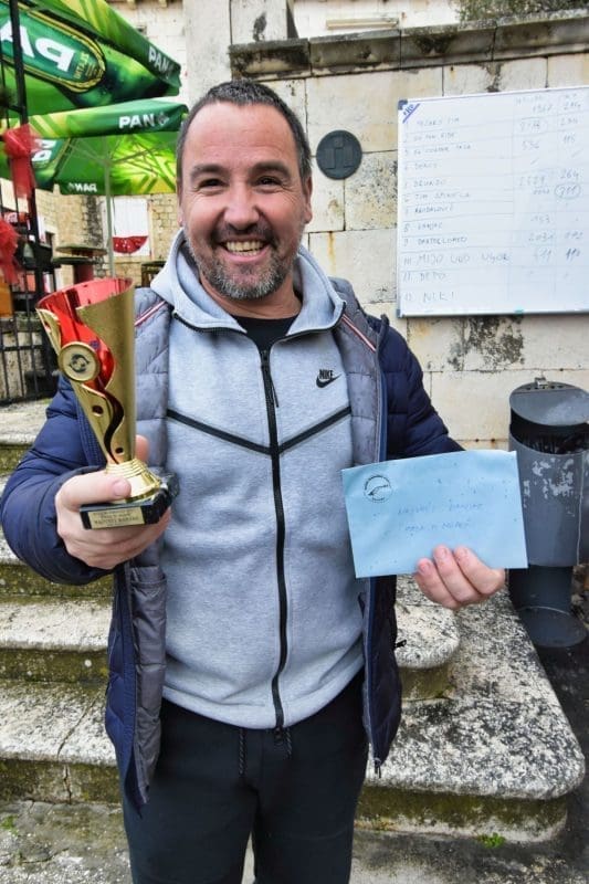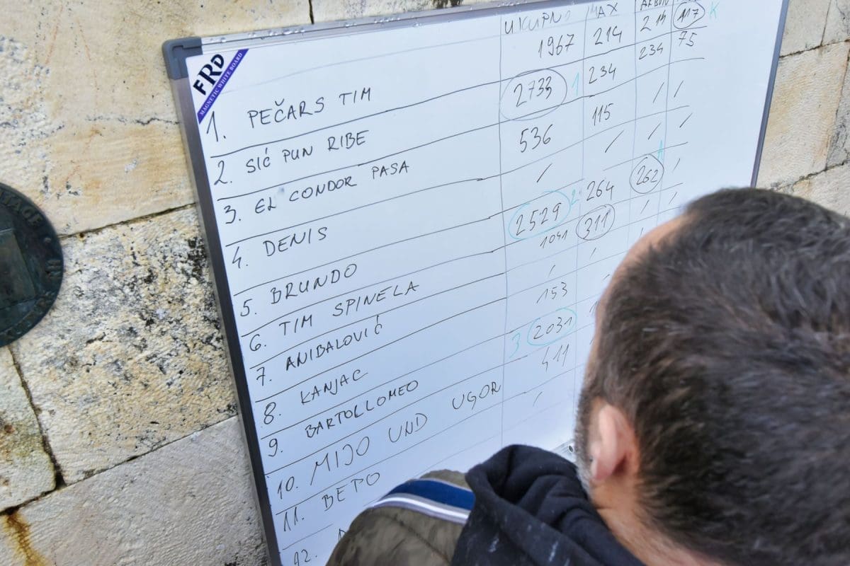 Najuspješnija u ekipnoj konkurenciji bila je ekipa „Sić pun ribe“ (D.Žuljević, D.Mlinac i F.Mlinac) sa 2733 gr ulova, zatim „Brundo“ (G.Bogdanović) sa 2529 gr i na trećem mjestu „Bartolomej“ (V.Vladislavić i B.Lukšić) sa 2031 gr. Nagradu za najveću ribu natjecanja, pagra od 311 gr osvojila je ekipa „Tim spinela“ (J.Lukšić i N.Lukšić), najvećeg kanjca od 117 gr imala je ekipa „Pećar's“ (P.Pećar i I.Pećar) a najvećeg arbuna od 262 gr ekipa „Brundo“ (G.Bogdanović).