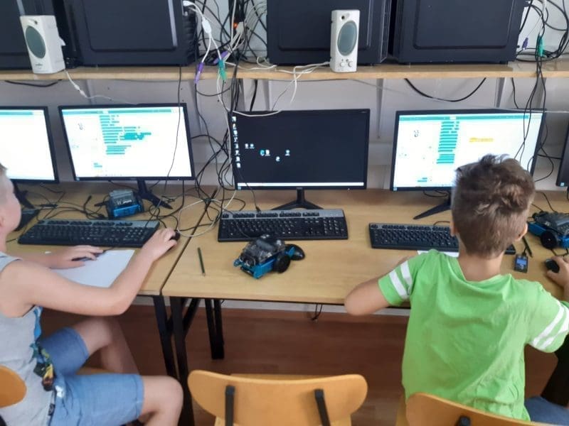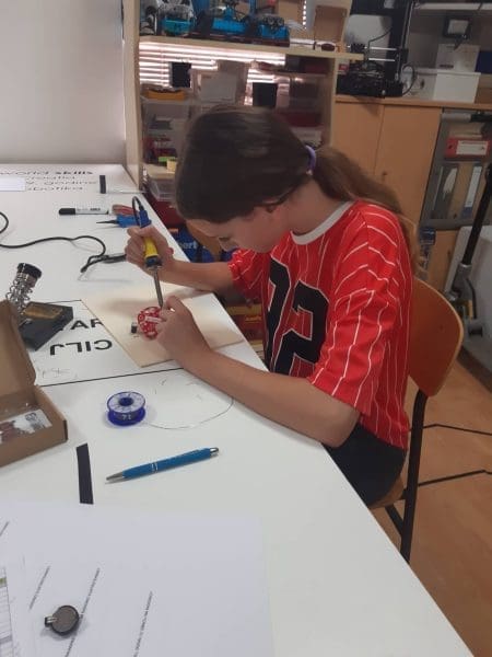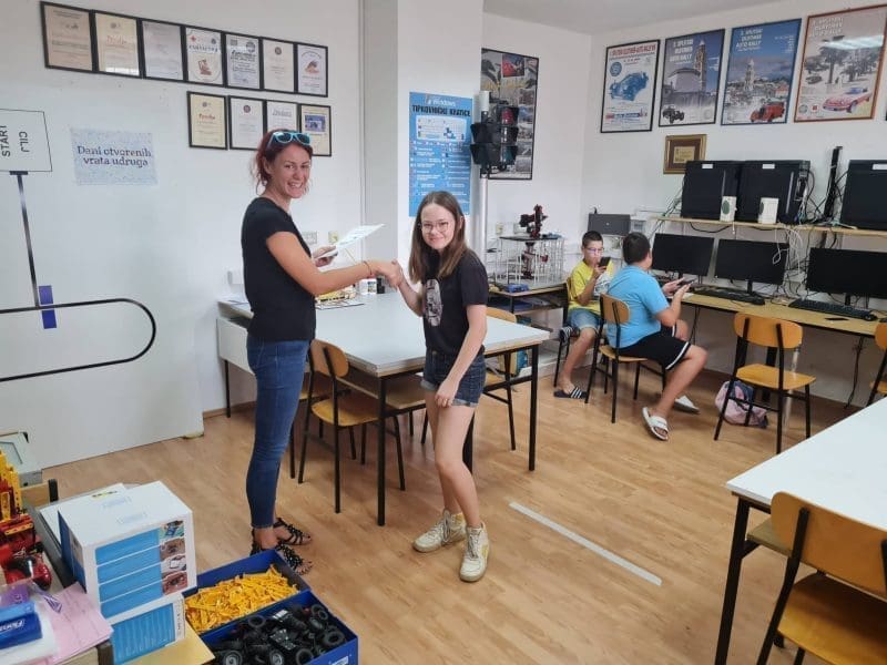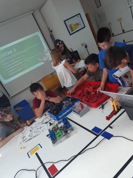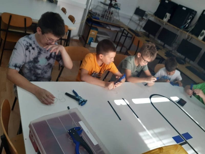 Prvi tjedan na programu je bila Elektrotehnika, na kojoj su se učenici upoznali s načinima proizvodnje, prijenosa i uporabe električne energije, pojmom elektriciteta i elektromagnetskog polja te strujnim krugovima. Kako bi pobliže shvatili određene sadržaje provodili smo pokuse, vježbali spajanje elektroničkih elemenata uspomoć simulatora, a teorijski dio smo isprakticirali na Wacky Robots setovima, gdje su učenici savladali i samostalno lemljenje elektroničkih elemenata na tiskane pločice. U drugom tjednu učenici su usvajali sadržaje iz Automatike – upoznali su se s Arduino IDE platformom, u simulatoru se okušali u raznim zadatcima (upravljanje LED diodama, tipkalima...) koje su potom i realizirali uspomoć Arduino Starter Kit-a. Treći je tjedan bio rezerviran za Robotiku, u sklopu koje su učenici usvojili pojmove vezane za dijelove, izradu i upravljanje uređajima. Po završetku radionice samostalno su izradili vlastite tehničke tvorevine te ih isprogramirali kako bi bile funkcionalne. U četvrtom tjednu učenici su se bavili Programiranjem, odnosno pisanjem kodova u blokovima i linijama, kako bi uvidjeli „pozadinsku logiku“ igara koje i sami koriste, a kako bi sve učinili još zabavnijim, organizirali smo i natjecanja u kojima se robote trebalo isprogramirati da u zadanom roku obavi neki zadatak (prijeđe ocrtanu liniju, prođe kroz labirint, odgura lopticu na predviđeno mjesto itd.).