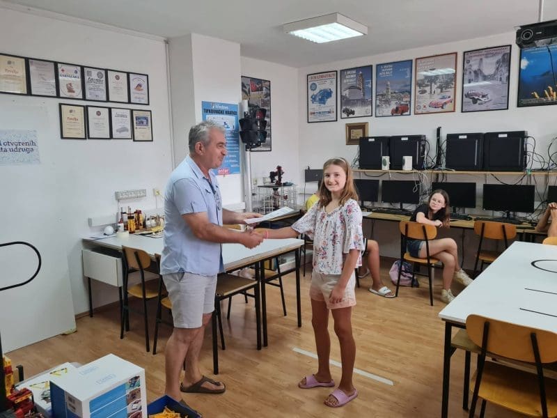Po završetku radionica, učenicima su zadnjega dana podijeljene i diplome za polaznike, kako bi im ostala uspomena na radionice na kojima su sudjelovali te kako bi im poslužila kao motivacija za daljnje bavljenje tehničkim aktivnostima. Diplome su učenicima uručili tajnik ZTK grada Splita, Tomislav Nikolić i Ella Rinčić, stručna suradnica ZTK grada Splita, voditeljica radionica.