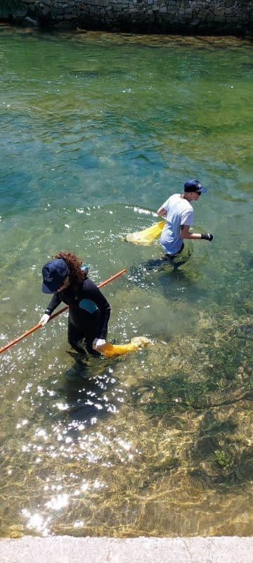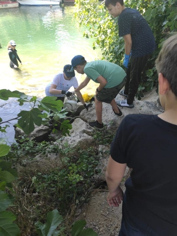 Volonteri iz udruge Oceanus djeci 5.b i 5.c razreda OŠ kraljice Jelene iz Solina, na čelu s njihovim učiteljicama Marijanom Gudić i Marijanom Bandić Buljan, prezentirali su ronilačku i drugu specijalnu opremu koja se koristi prilikom podvodnih čišćenja , te izveli pokaznu vježbu uklanjanja otpada iz rijeke.