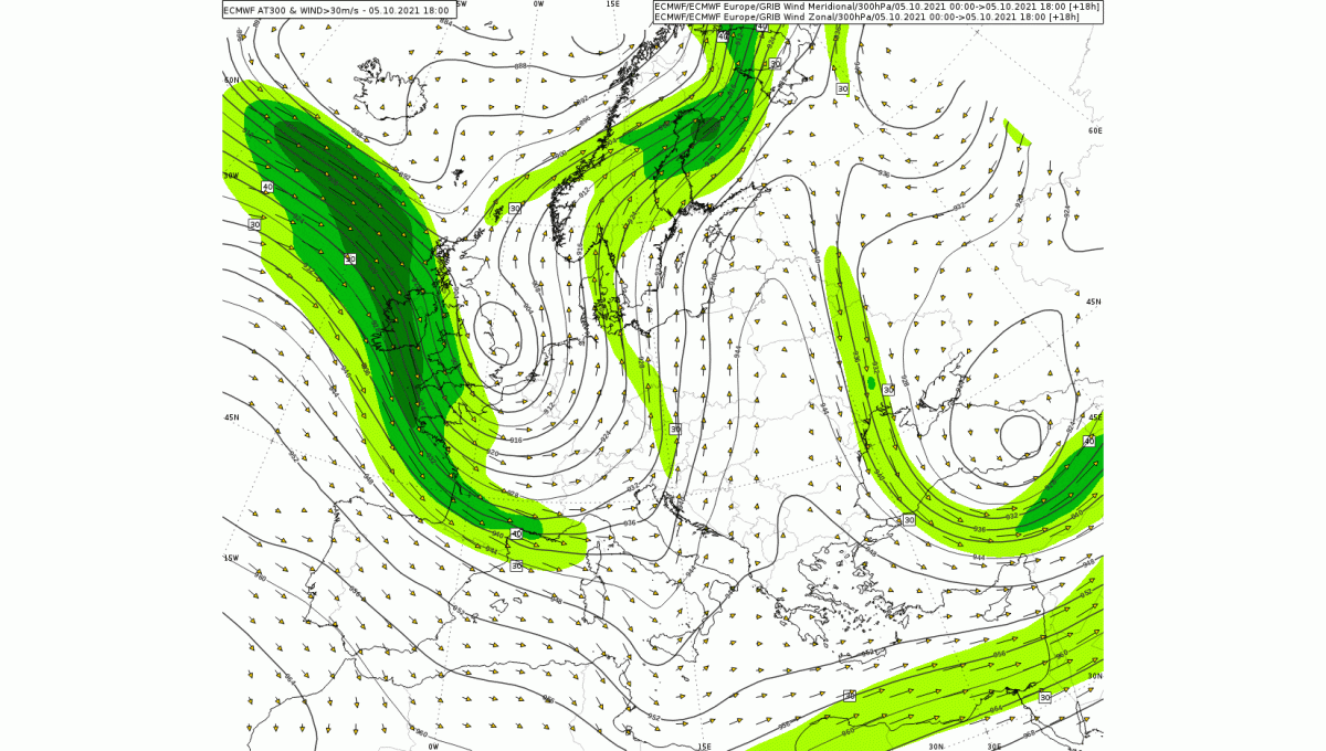 Sa sjevera nam se približava visinska dolina praćena mlaznom strujom koja će sljedećih dana djelovati na vrijeme u Hrvatskoj (Animacija 1.).