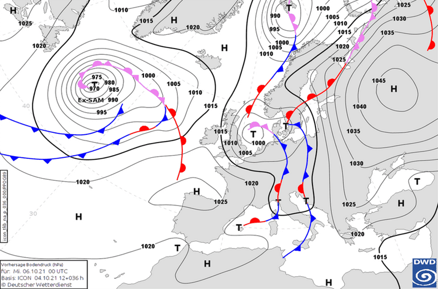 Izražen frontalni sustav povezan s ciklonom nad sjeverom Italije (Slika 1.) prelazit će već noćas i sutra preko naših krajeva donoseći oblake i kišu, a mjestimice će biti i izraženih pljuskova s grmljavinom.