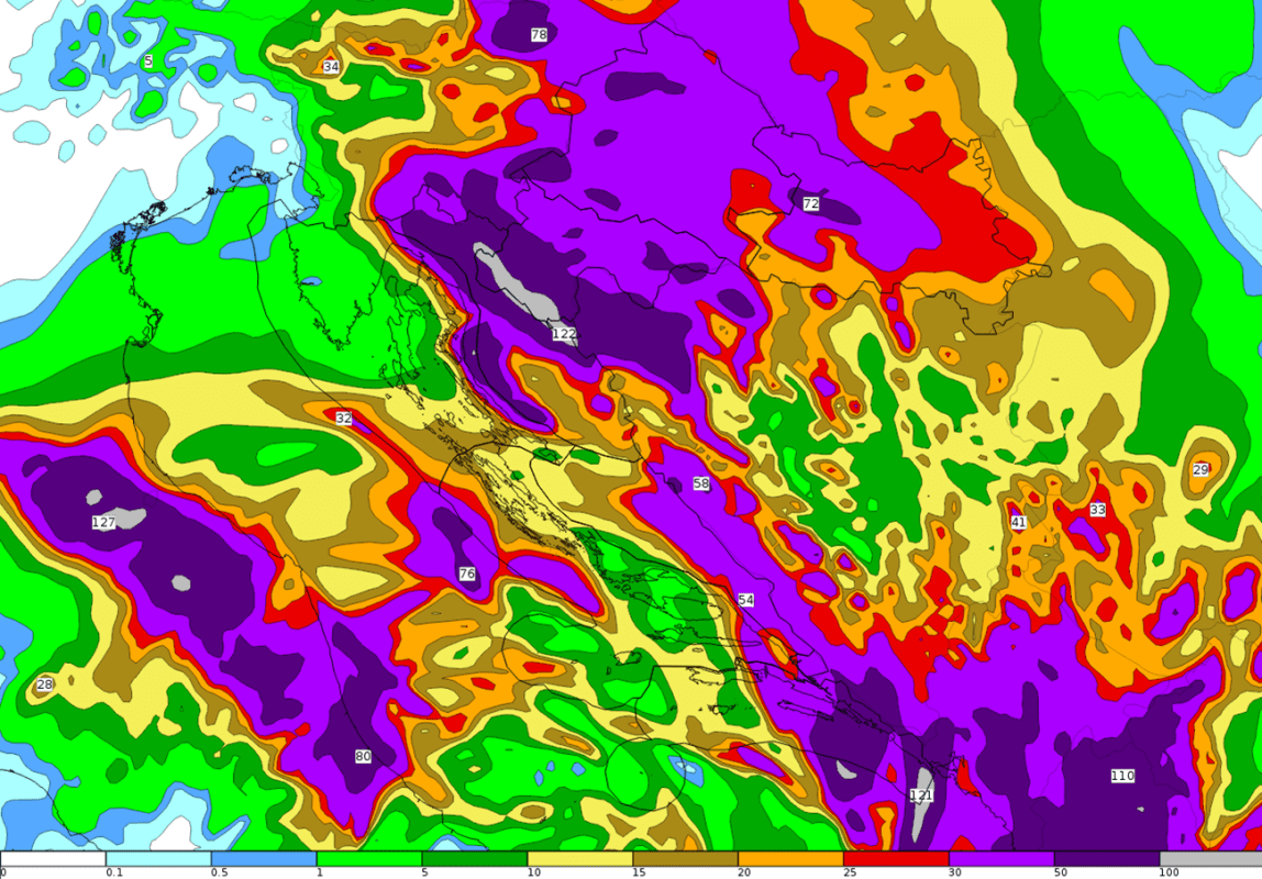 Tijekom četvrtka će se nad Italijom i Jadranom dodatno intenzivirati ciklona (Animacija 1.) pa se u Hrvatskoj očekuju još veće količine kiše, osobito na zapadu unutrašnjosti i na jugu zemlje (Slika 2.).