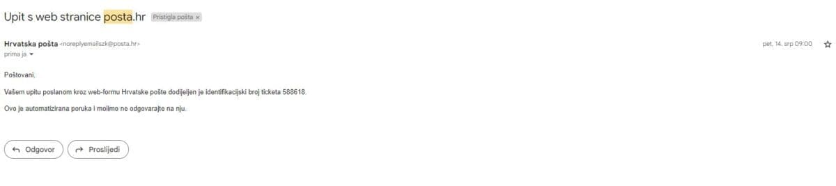 Zašto su mi se danas digli živci zbog ove pošiljke? Zato jer su mi danas odgovorili na moj upit od 13. srpnja!