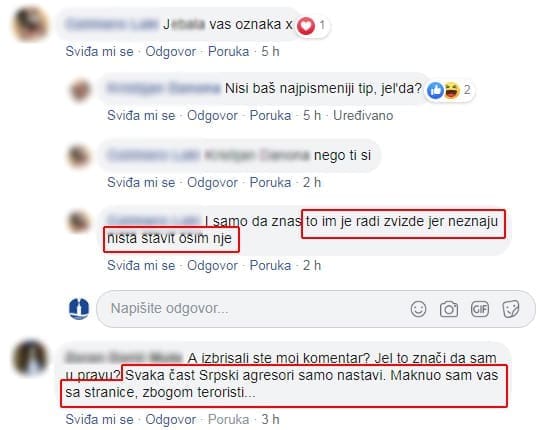 "Komunjare, udbaši, srpski agresori, teroristi…" samo je dio epiteta upućen ovom portalu, čiji je dio zbog degutantnosti istih, izbrisan. No, kada je ovaj portal krenuo istraživati, i brojnim drugim kolegama koji su izvještavali o nekom od potresa događalo se slično. Razlog je racionalnom i bistrom mozgu, najblaže rečeno – bizaran; screenshot grafičkog izvješća s kartom i oznakom epicentra podrhtavanja tla, koji je označen petokrakom.