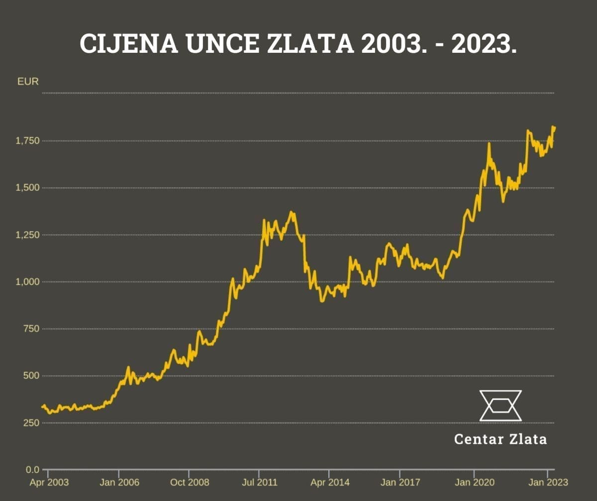 “Sve više ulagača odlučuje povući svoj kapital s napuhnutog tržišta nekretnina te sigurno utočište za njega nalaze upravo u zlatu, realnoj imovini koja se kroz povijest više puta dokazala kao dobar način zaštite kapitala u doba inflacije i recesije. Visok prinos kojeg je zlato u prošlosti nosilo najizraženiji je upravo u takvim vremenima, a primjer je Velika recesija 2008. godine za čije je vrijeme cijena zlata narasla gotovo 200% u svega nekoliko godina”, tvrdi Kokanović.
