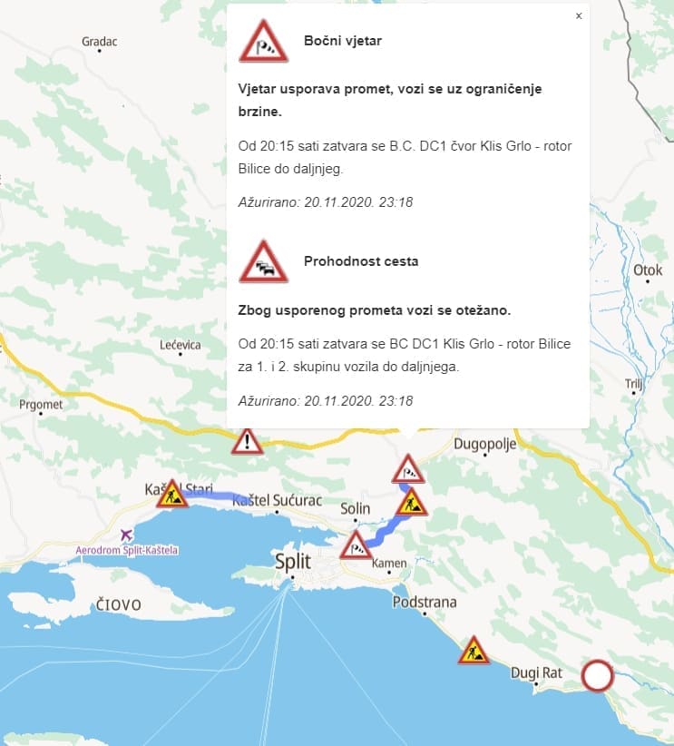 Zbog štete nastale nevremenom i sanacije iste za sav promet zatvorena je Jadranska magistrala (DC8) od Bakarca do Šmrike.