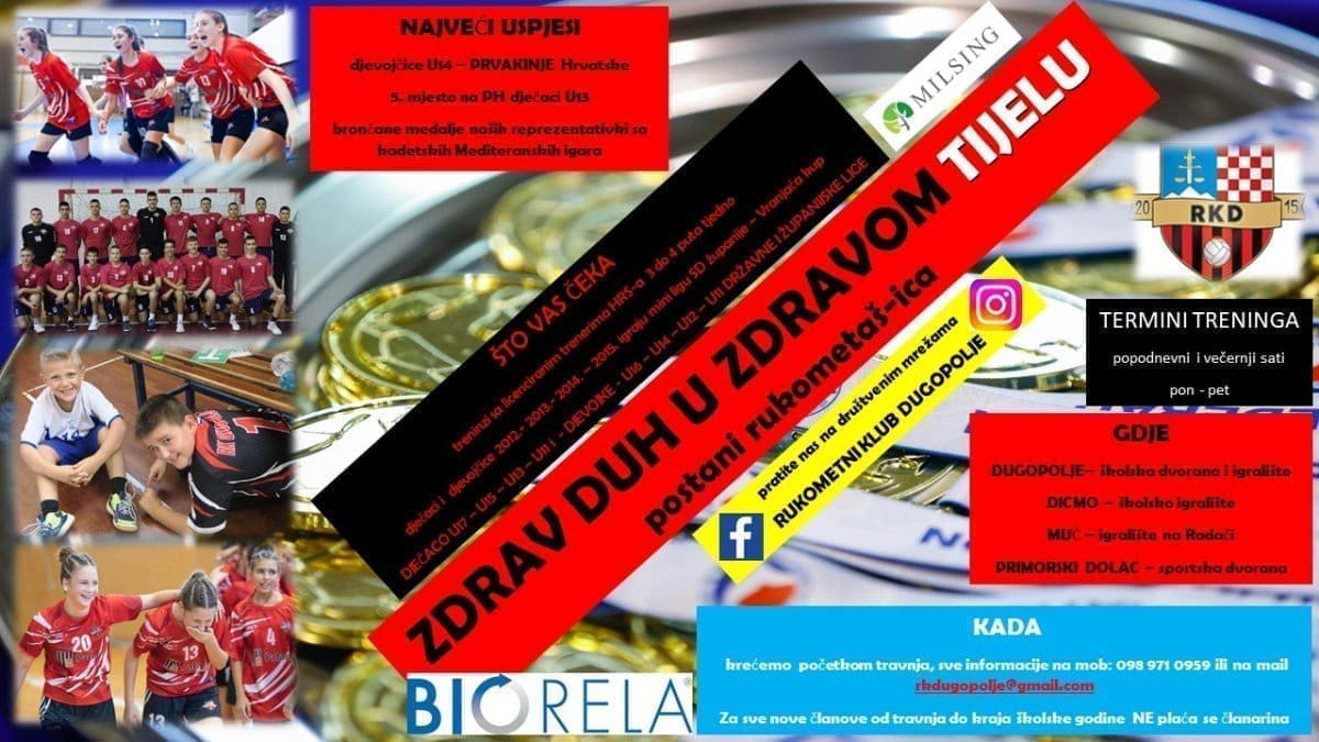 "Krajem ožujka održali smo prezentacije po školama s ciljem da animiramo što više djece i potaknemo ih na bavljenje sportom. Vjerujemo da su sva djeca uživala, a osmijeh na lice sigurno su im izmamili zdravi slatkiši koja su dobila sva djeca od našeg sponzora. U sklopu projekta pozivamo svu djecu osnovnoškolske dobi na nam se priključe. Treninzi će održavati na već standardnim lokacijama u Dugopolju, Muću, Primorskom Dolcu, a do kraja školske godine i Dicmu na školskom igralištu. Također svi novi članovi koji nam se priključe do kraj školske godine oslobođeni su plaćanja članarine", poručuju iz Rukometnog kluba Dugopolje te nadodaju: