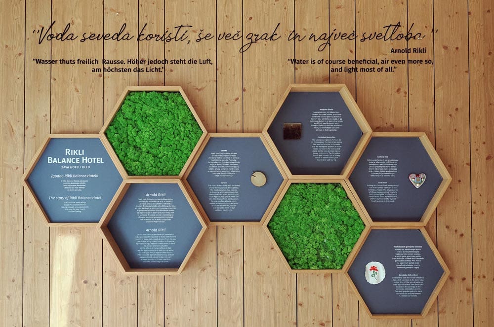 "Mi smo mjesto za odmor i trudimo se u svakom segmentu udovoljiti suvremenim putnicima. Interijerima dominira prepoznatljiv miris koji poziva na opuštanje, sober su pune svjetla ali i elemenata koji pričaju priču o ljepotama prirode ove destinacije. Kuhari svakodnevno prilagođavaju meni Riklijevoj metodi ali i potrebama suvremenog čovjeka, poslužujemo svakodnevno Riklijeve kolačiće i kruh, u hotelu imamo regeneracijsku Riklijevu sobu koja omogućuje maksimalno opuštanje i regeneraciju. Interijer te sobe je u potpunosti prirodan - dominiraju vuna i drvo a kromoterapija svojim crvenim, plavim, zelenim i bijelim svjetlom omogućuje harmonizaciju. Zidovi regeneracijske sobe bogati su mahovinom koja pročišćava zrak od bakterija. Kad je voda u pitanju ponosimo se prekrasnim bazenski kompleksom i novouređenim wellnessom Živa" - kaže Luka Stepančić direktor Sava Hoteli Bled otkrivajući kako je wellness na ovom mjestu adut više u jačanju turizma ove destinacije. Uz šest sauna koje nude brojne programe, bazenom s pogledom na Bledsko jezero, Wellness Živa nudi, uz klasičnu ponudu, i nekoliko jedinstvenih. Jedna od najpopularnijih je Riklijev dnevni ritual koji omogućuje kombiniranje saune, kupanja u bazenu, masaže snopovima smreke obogaćena eteričnim uljem koje se lagano utapkava u kožu te zdravim napitkom i obrokom.