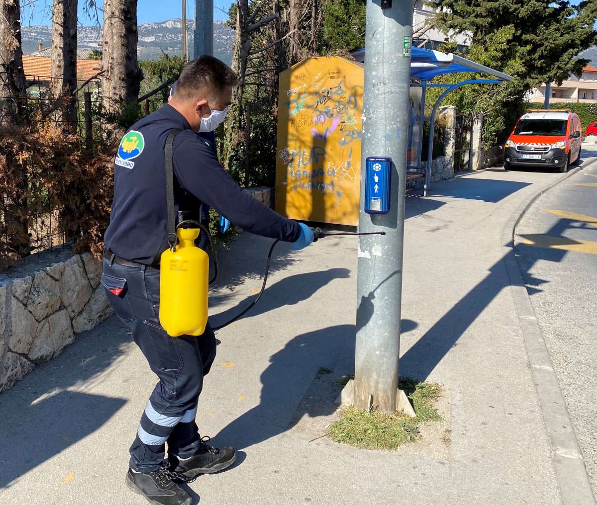 Svojim radom, u ovim trenucima našim sugrađankama i sugrađanima, našim korisnicima usluga, želimo osigurati što sigurnije okruženje. Zato smo započeli vršiti dezinfekciju autobusnih stajališta, zajedničkih kontejnera za prikupljanje otpada koji se nalaze na javnim površinama i tipkala za pješake na semaforima.