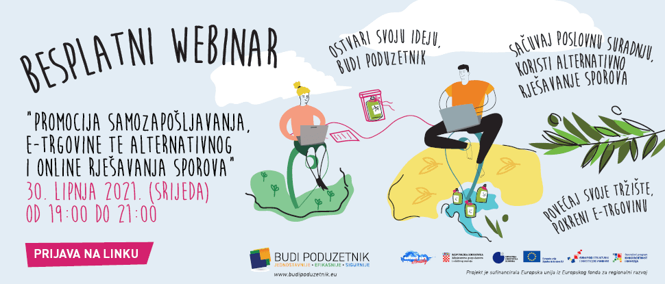 U sklopu nacionalnog projekta „Promocija poduzetništva“ Hrvatska obrtnička komora organizira besplatan webinar na temu „Samozapošljavanje, e-trgovina i alternativno te online rješavanje sporova“.