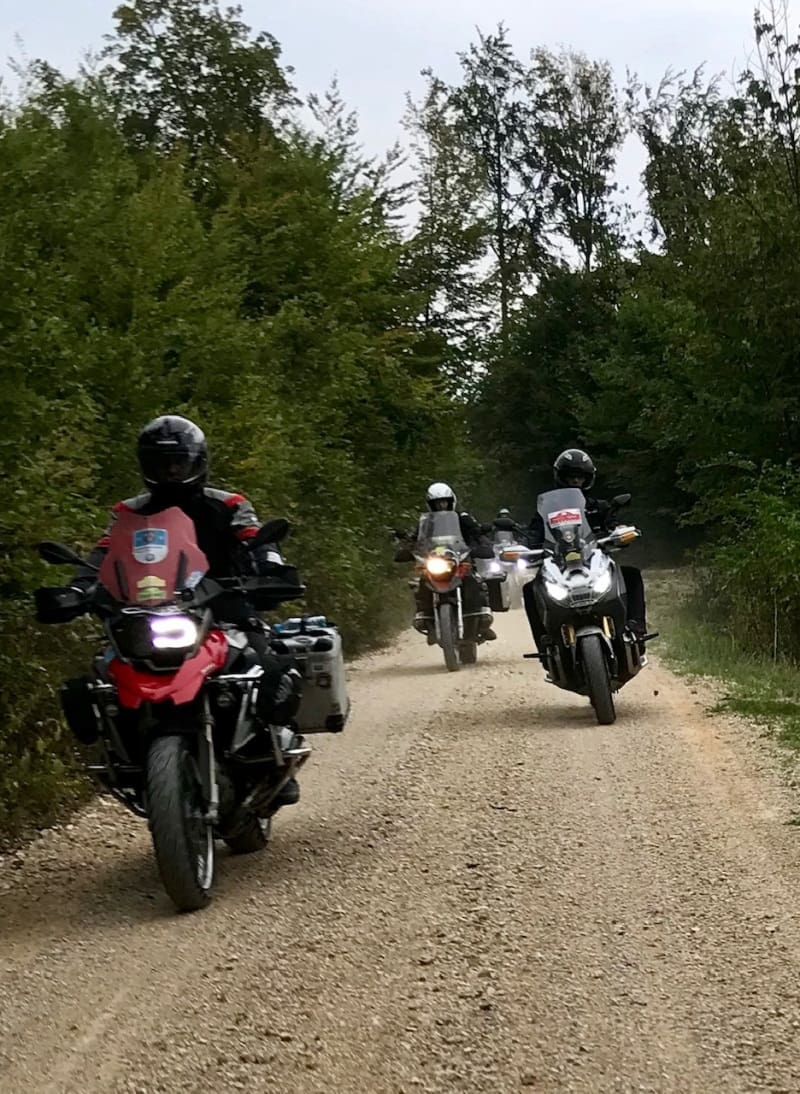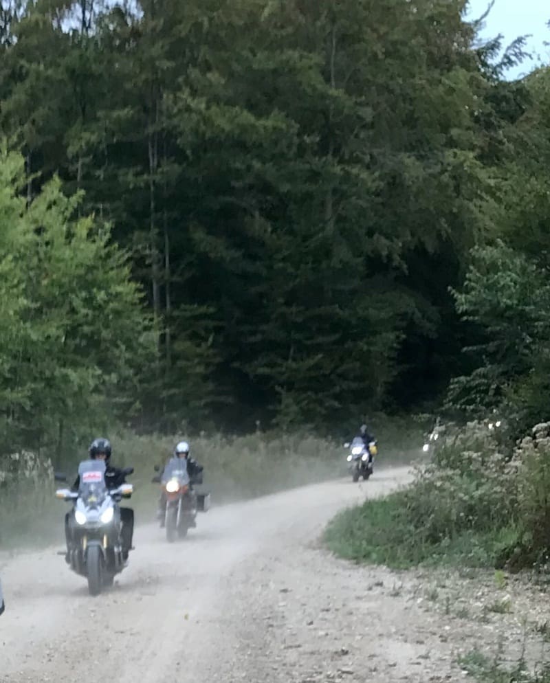 Nakon ručka krećemo za Semič i sada smo grupa od 14 motora. Ulazimo u Sloveniju i Matijaž nas predvodi do Semiča, ali prije nego što uđemo u mjesto, skrećemo na makadamski put i vozimo kroz gustu šumu.