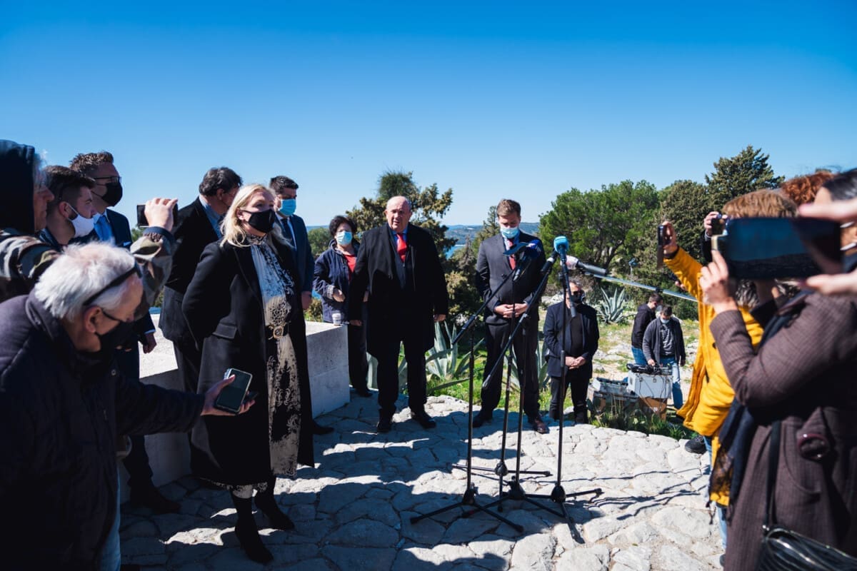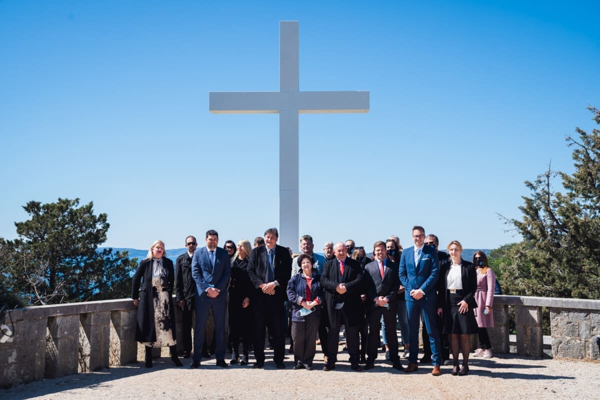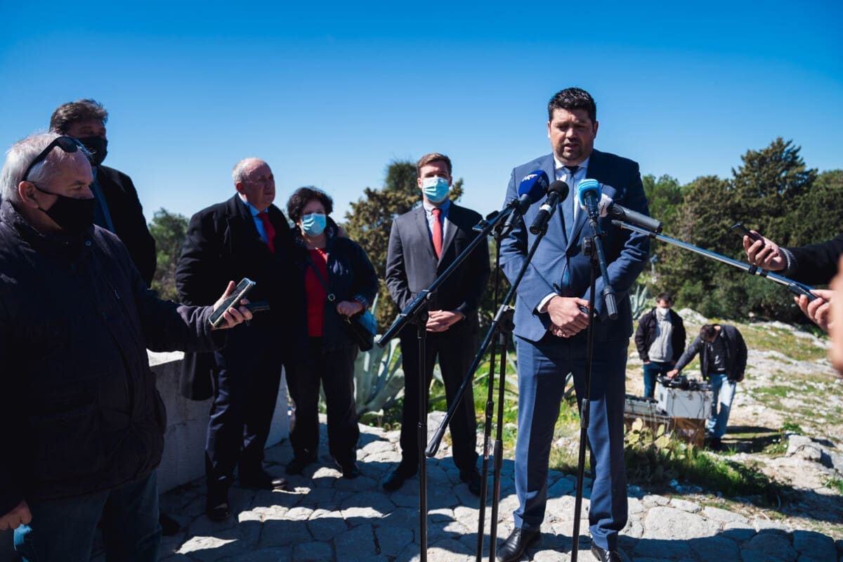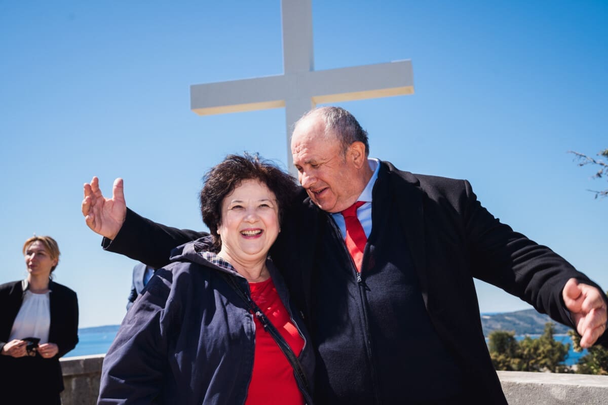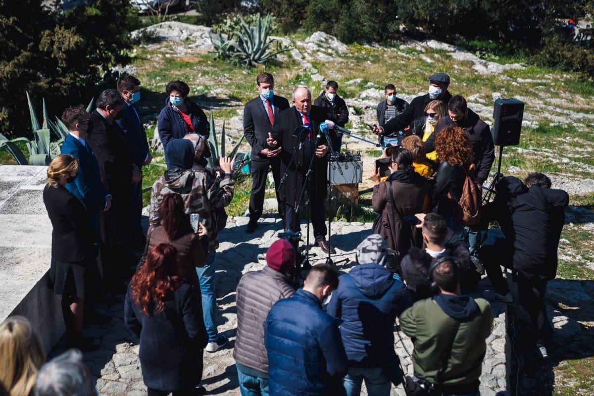 HGS-ov kandidat za gradonačelnika Grada Splita Željko Kerum ispred Križa na splitskom Marjana (vrh Telegrin) drži konferenciju za medije.
