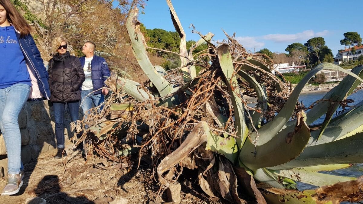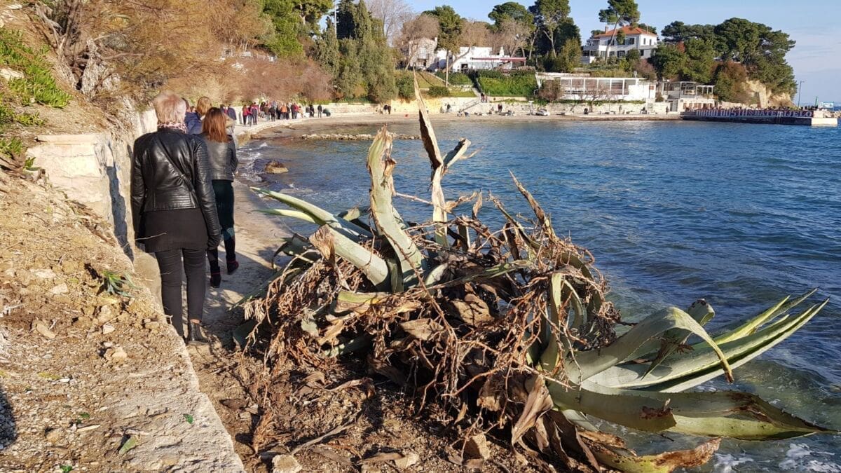 Pravi šok doživjela je skupina građana na šetnici u uvali Firule. Zemljana gromada s kompletnom višemetarskom agavom pala je na šetnicu i djelomično prepriječila put prolaznicima. Agava se odronila s pokosa iznad šetnice i pala samo nekoliko metara prvih prolaznika.
