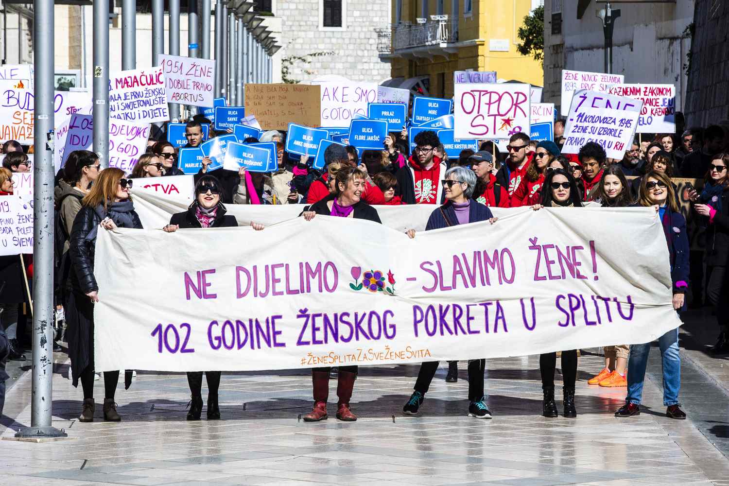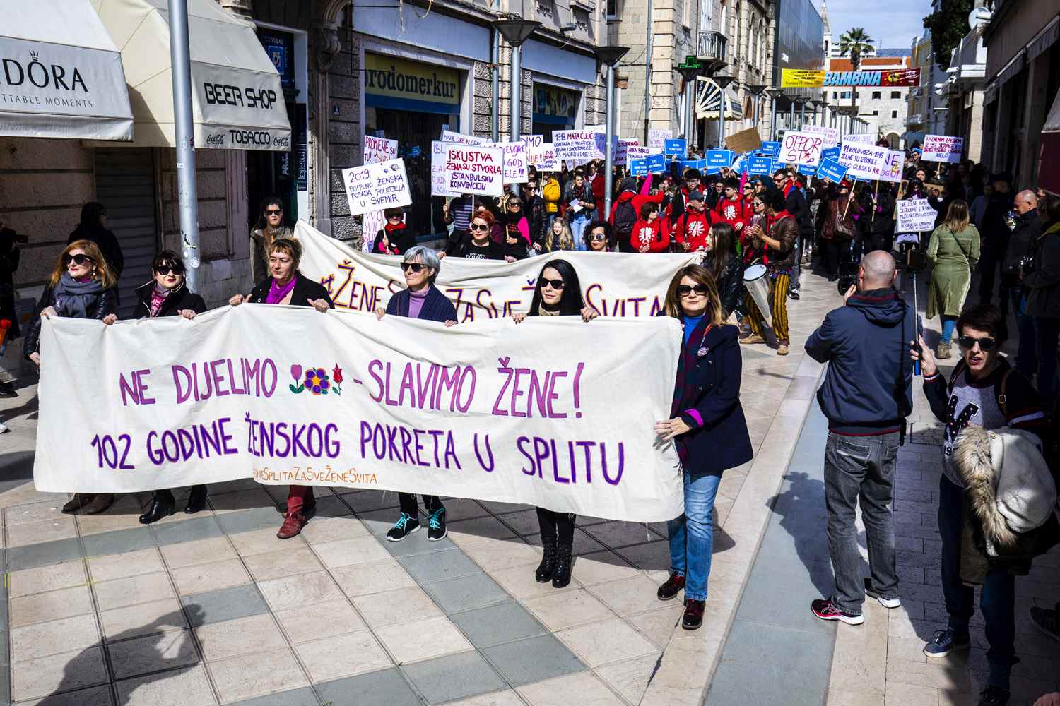 Žene Splita su i ove godine, četvrti put zaredom, povodom 8. ožujka sudjelovale u maršu za prava žena. Središnje okupljanje je počelo točno u podne, na Trgu Gaje Bulata, ispred HNK Split.