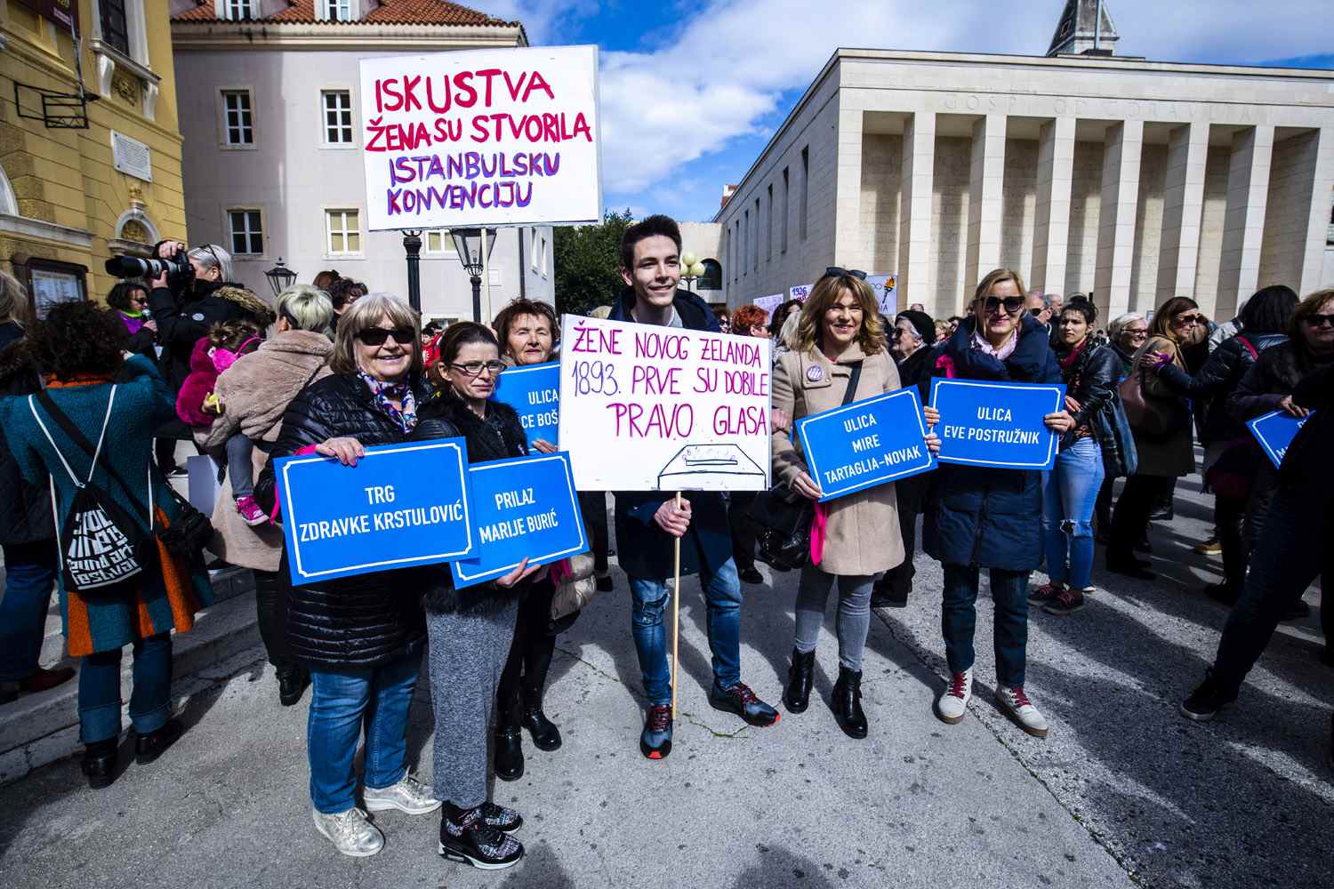 “Na Dan žena slavimo kontinuitet ženske borbe, postignuća i snagu žena. Sudionice i sudionici marša nosili su natpise ulica s imenima 102 znamenite žene iz prošlosti Splita i Dalmacije. 102 potvrde ženskog uspjeha i borbe za 102 godine ženskog pokreta u Splitu.