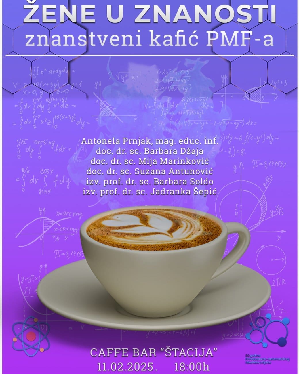 Povodom Međunarodnog dana žena u znanosti i obilježavanja 80. obljetnice Prirodoslovno-matematičkog fakulteta održat će se događaj Žene u znanosti znanstvenog kafića PMF-a.