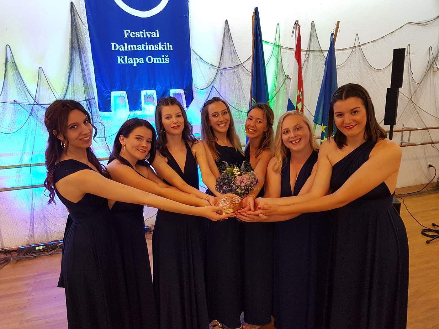 - Pustili smo entuzijazmu da nas drži još nekoliko dana i sreći da sija s naših lica, ali već je bilo vrijeme da skakanje od sreće zamijenimo klapskim probama jer se bližio nastup ni manje ni više nego na Omišu. No, u međuvremenu smo skoknuli i do Jelse na otoku Hvaru gdje se održavala smotra pod nazivom Jelsa od versa s koje smo kući, osim divnih trenutaka za pamćenje, ponijeli svoje prve nagrade, i to čak tri: prvu nagradu publike, drugu nagradu stručnog žirija i nagradu za najbolju izvornu skladbu. U Split smo se vratile sa srećom na licima. Već smo postigli puno toga i bez ikakva opterećenja i uzdignute glave, već za dva dana, mogle smo kročiti na omišku pozornicu.