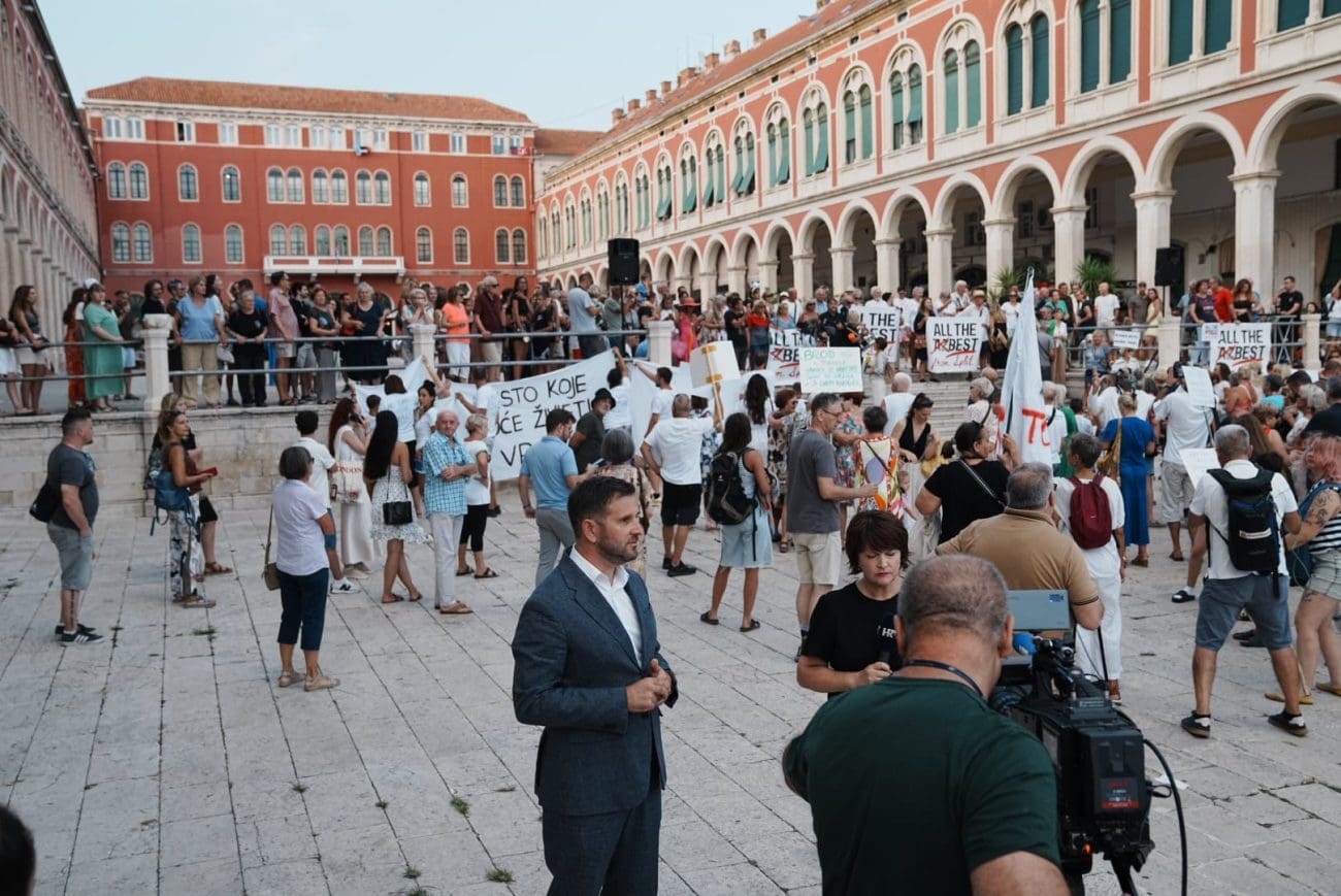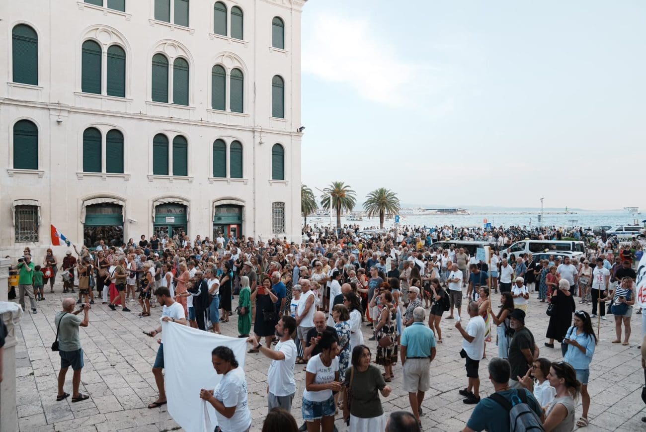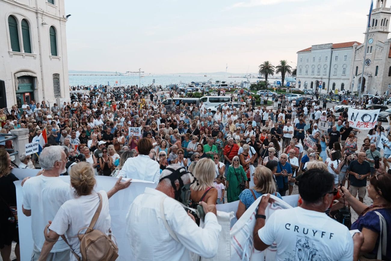 Okupljanje je počelo u 18:30 sati kod vodoskoka na Rivi, a potom se kolona uputila prema skalama Prokurativa, gdje je u 19 sati započeo prosvjedni skup. Atmosferu su obilježile snažne poruke: “Ne želimo azbest u našem gradu”, “Dosta trovanja Splita”, “Za zdravlje naše dice”, “Zdravlje nema cijenu” i “Ovo nije politika, ovo je borba za život”.