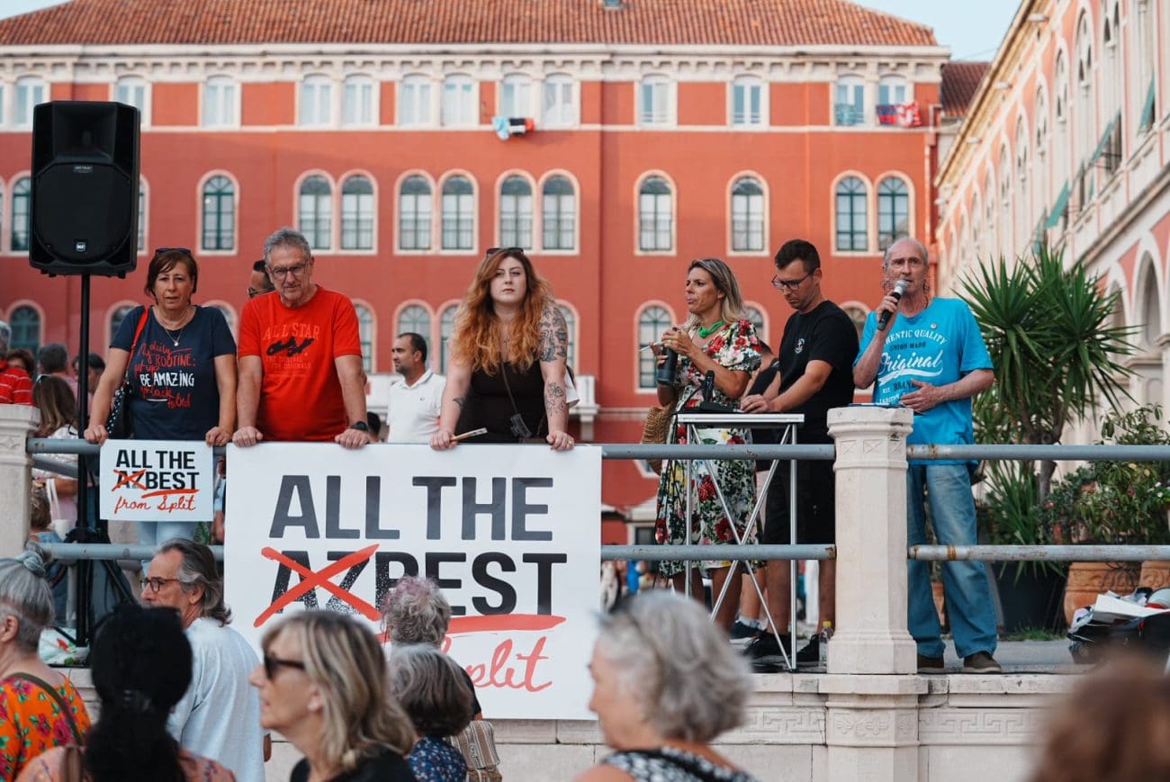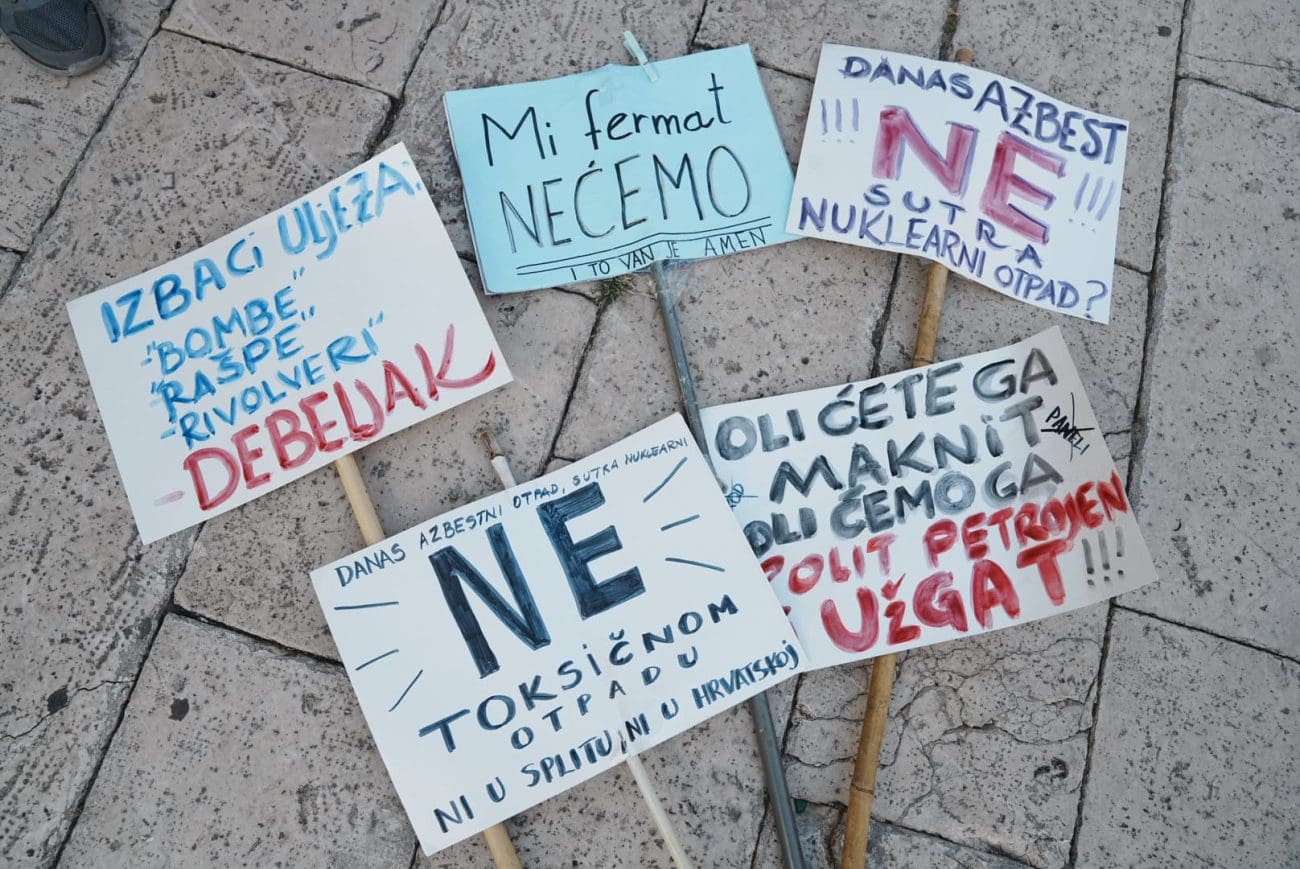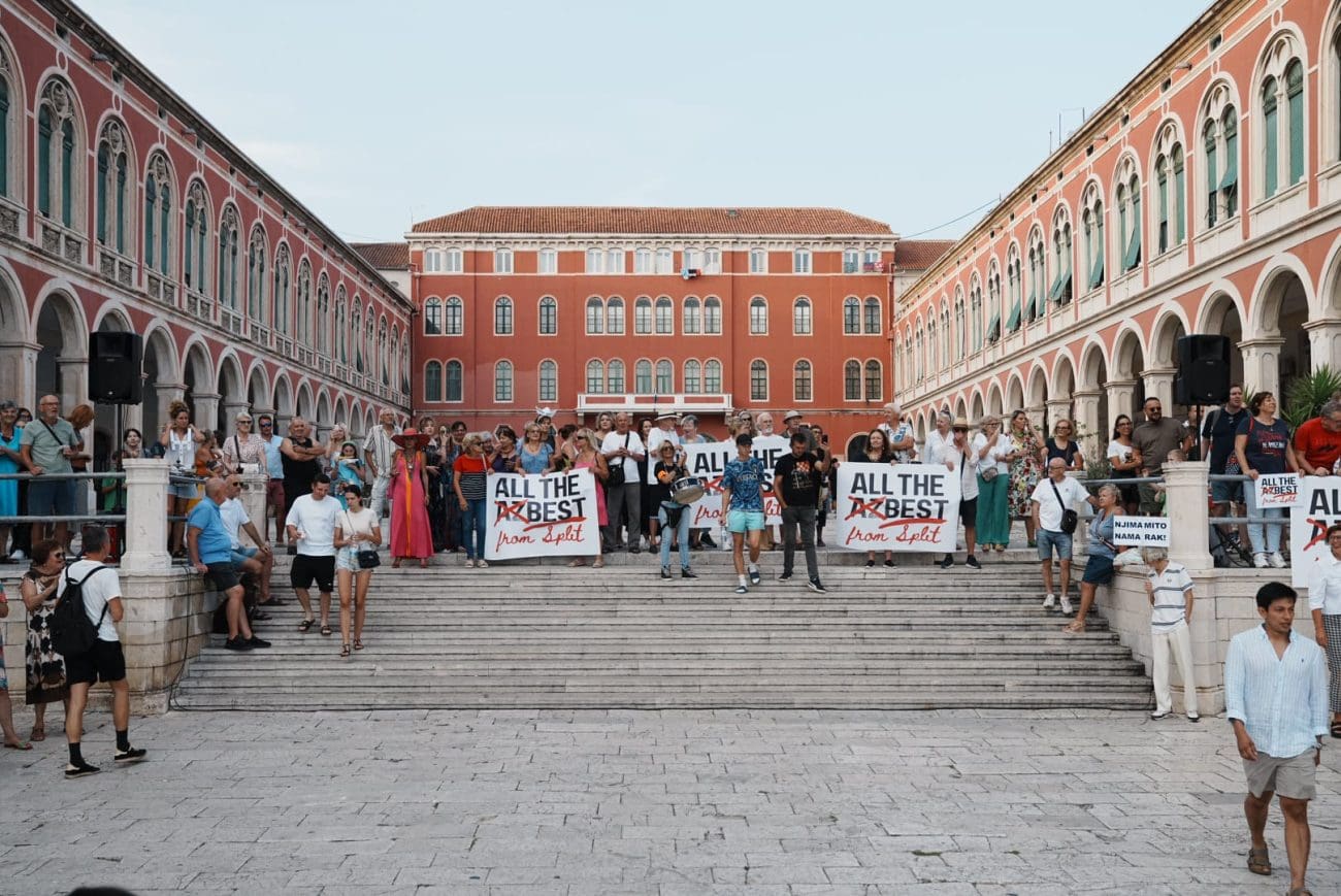 Okupljanje je počelo u 18:30 sati kod vodoskoka na Rivi, a potom se kolona uputila prema skalama Prokurativa, gdje je u 19 sati započeo prosvjedni skup. Atmosferu su obilježile snažne poruke: “Ne želimo azbest u našem gradu”, “Dosta trovanja Splita”, “Za zdravlje naše dice”, “Zdravlje nema cijenu” i “Ovo nije politika, ovo je borba za život”.
